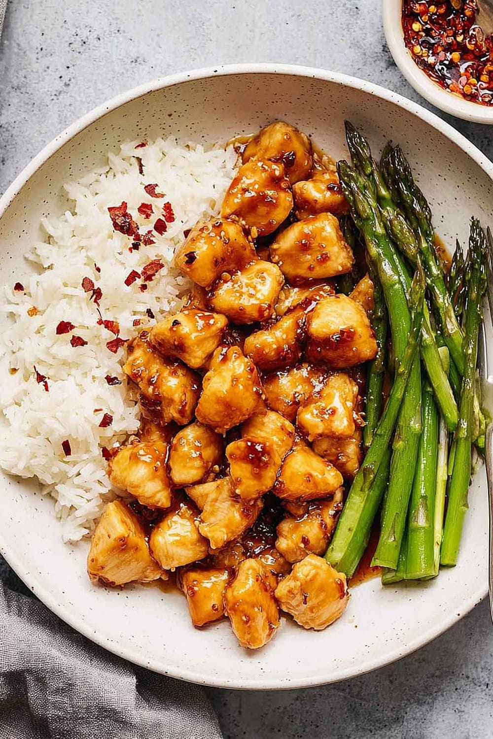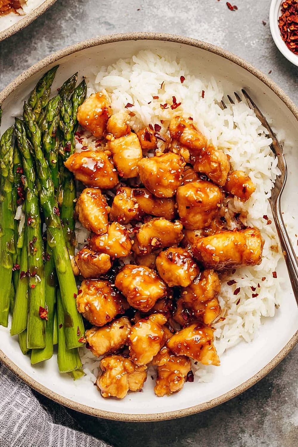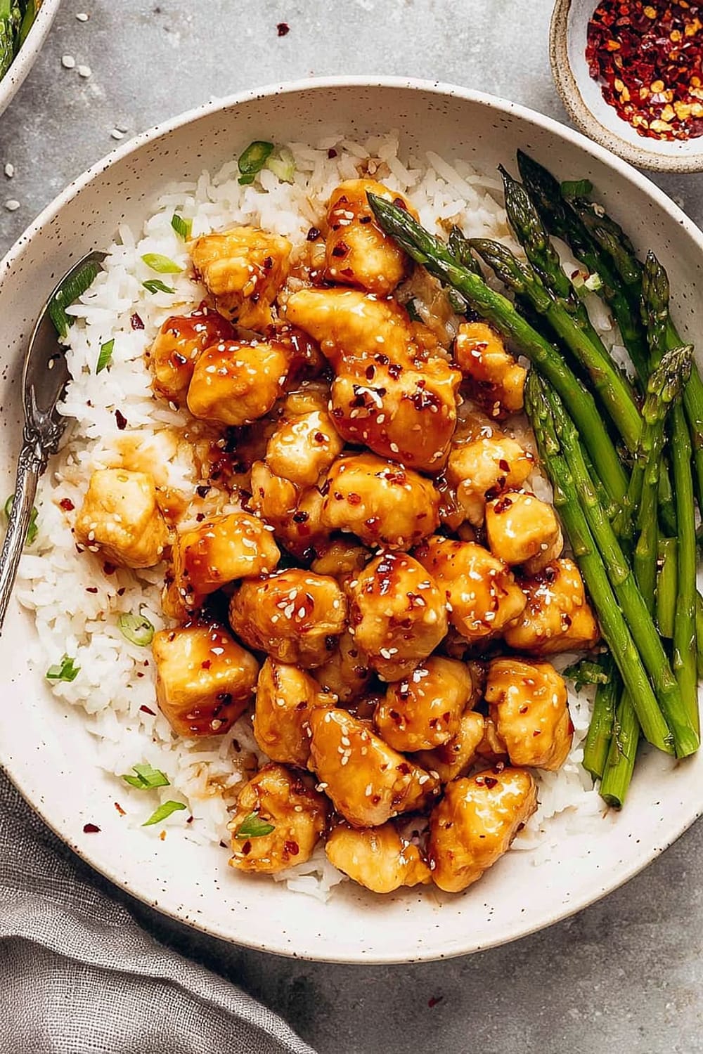 Steamed jasmine rice is the classic choice for soaking up every drop of sauce, but coconut rice adds tropical richness that complements the honey sweetness. Asian cucumber salad with rice vinegar provides cooling crunch that contrasts beautifully with the sticky chicken, while stir-fried bok choy or snow peas add fresh, crisp vegetables without overwhelming the main dish. Sesame roasted broccoli brings nutty earthiness that grounds the sweet-spicy flavors perfectly.