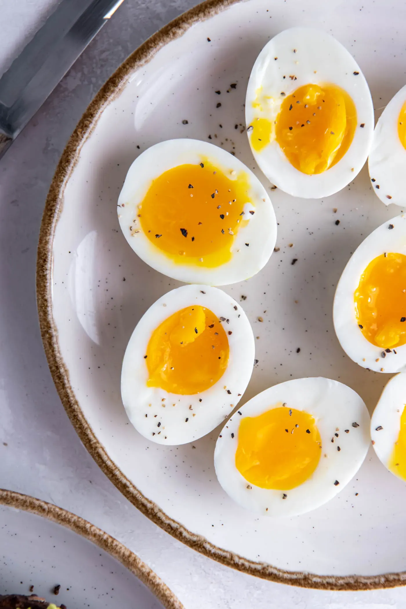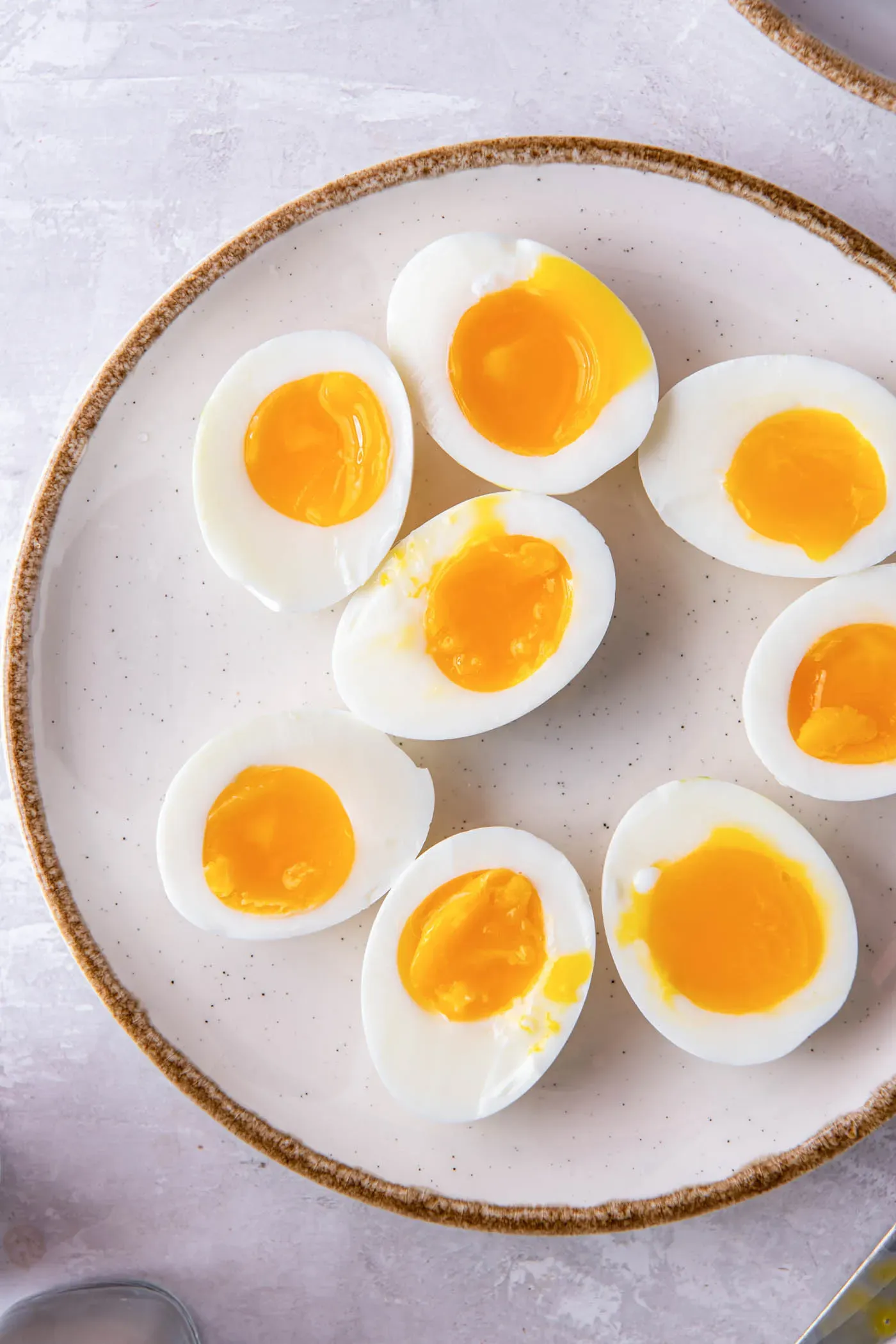 Your eggs should have firm whites and creamy, jammy yolks. Yum!
