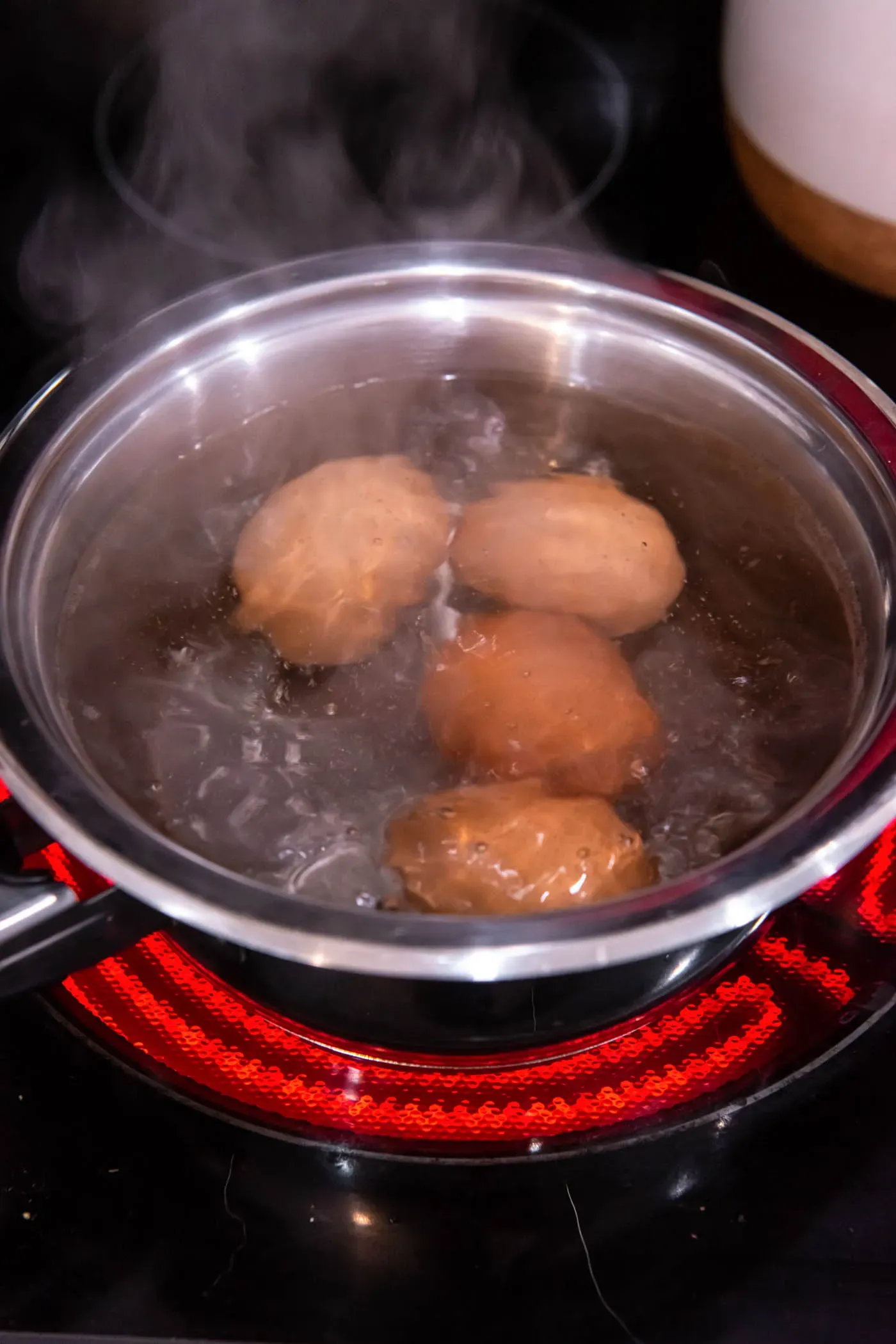 - Don’t overcrowd the pot – cook 4-8 eggs at a time.