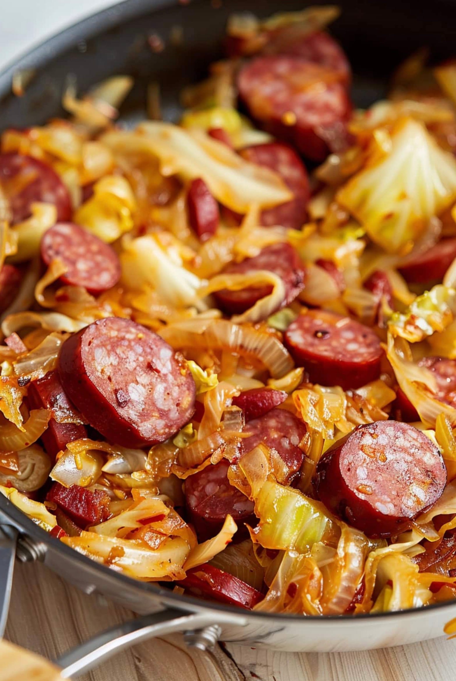 To make the best kielbasa and cabbage skillet, use a high-quality kielbasa. The sausage is the star, so pick one you really like.