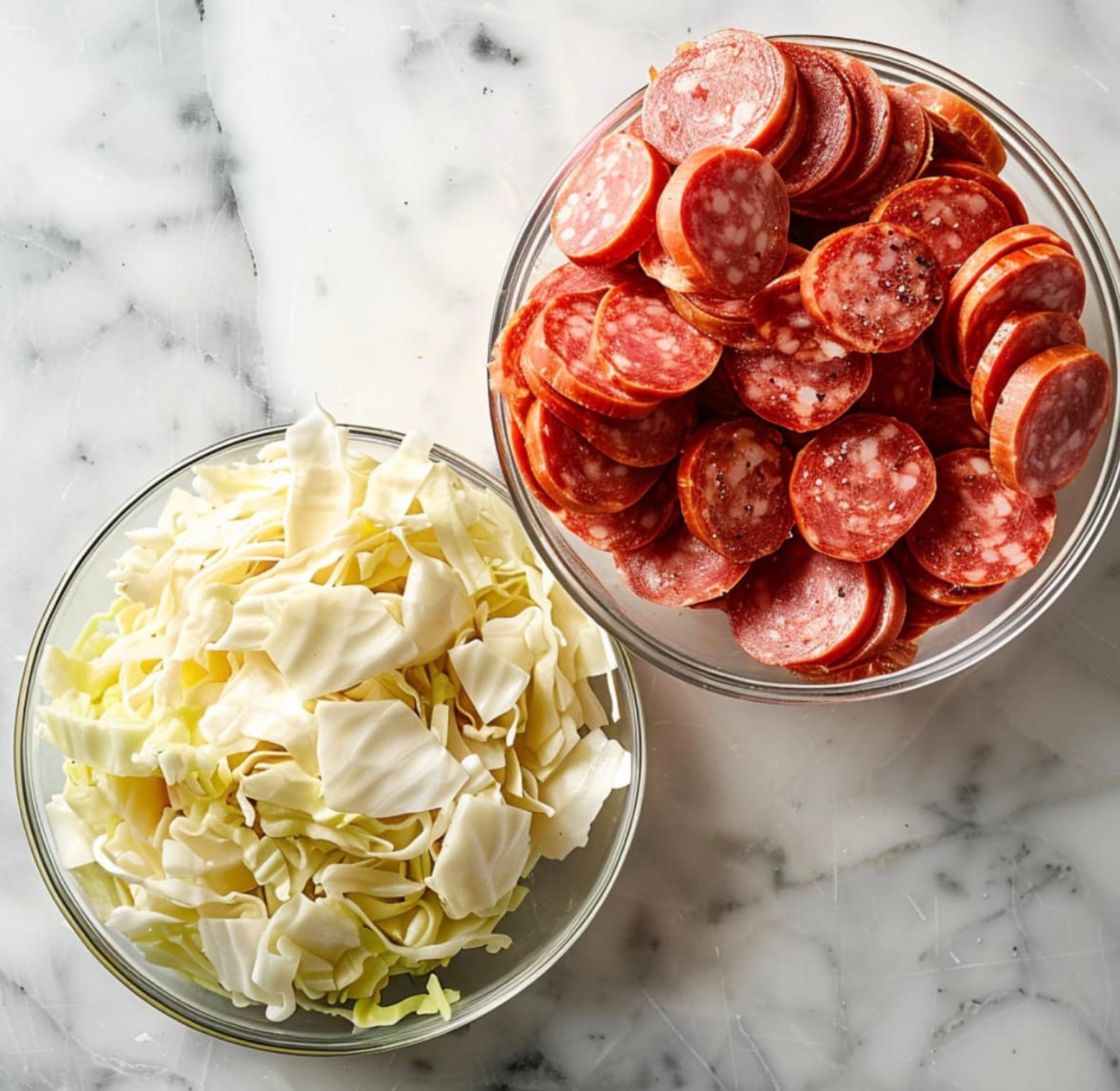 Make sure to slice the kielbasa into 1/4-inch rounds. Chop the onion and mince the garlic. Core and thinly slice the cabbage.
