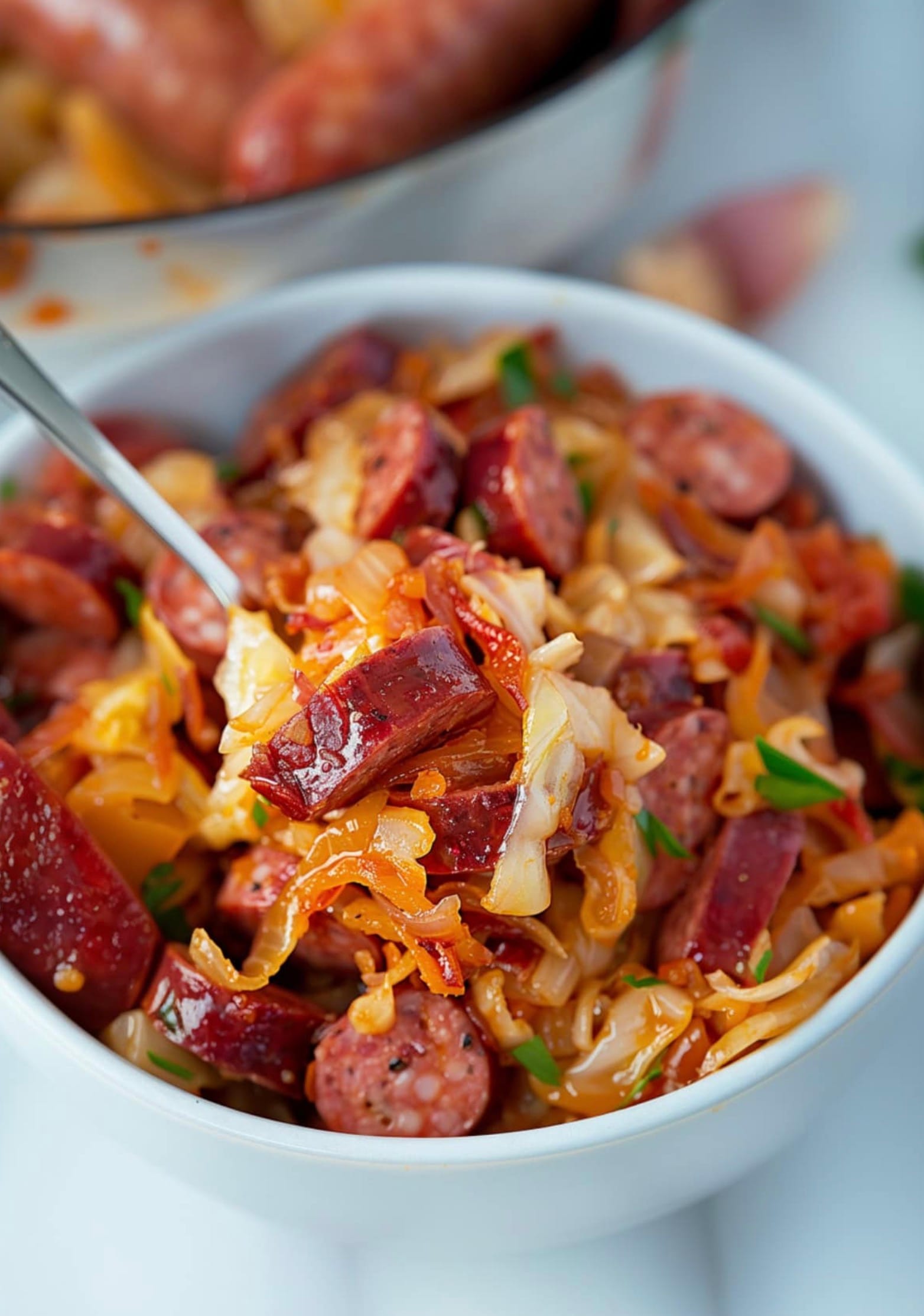- Cut the amount of kielbasa in half and add more cabbage to boost fiber.