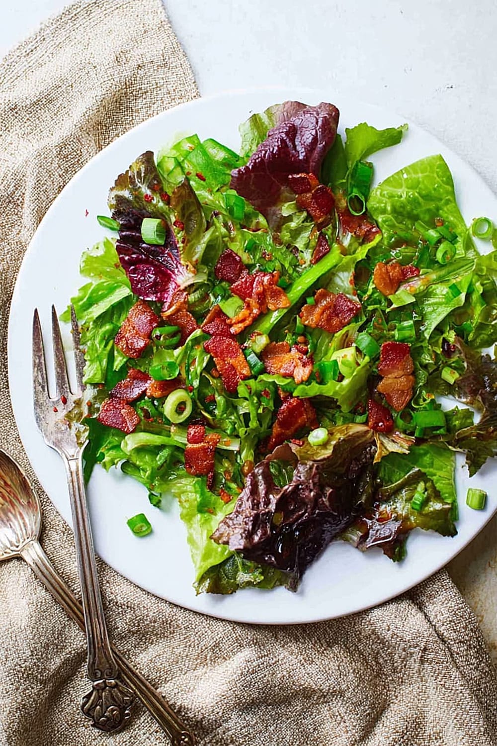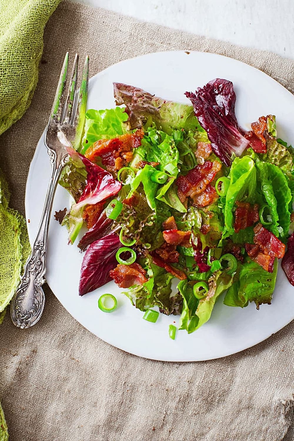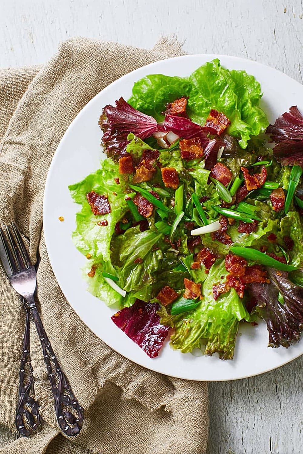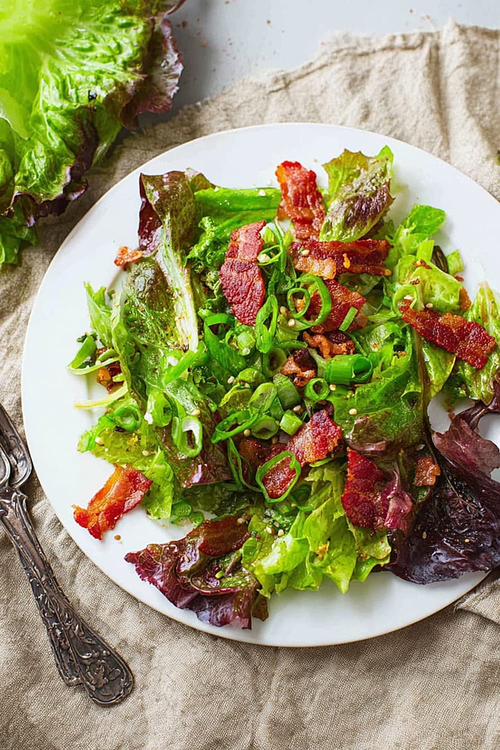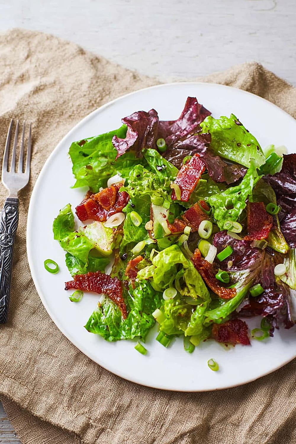 Unfortunately, killed lettuce doesn’t store well due to its delicate nature. However, you can prep components ahead: cook bacon and store covered (reheat before making dressing), wash and dry lettuce (store in refrigerator), and slice onions (keep covered). The dressing can be made and kept warm in the pan for up to 10 minutes before serving. For entertaining, prepare everything up to the final tossing step, then finish just before serving.