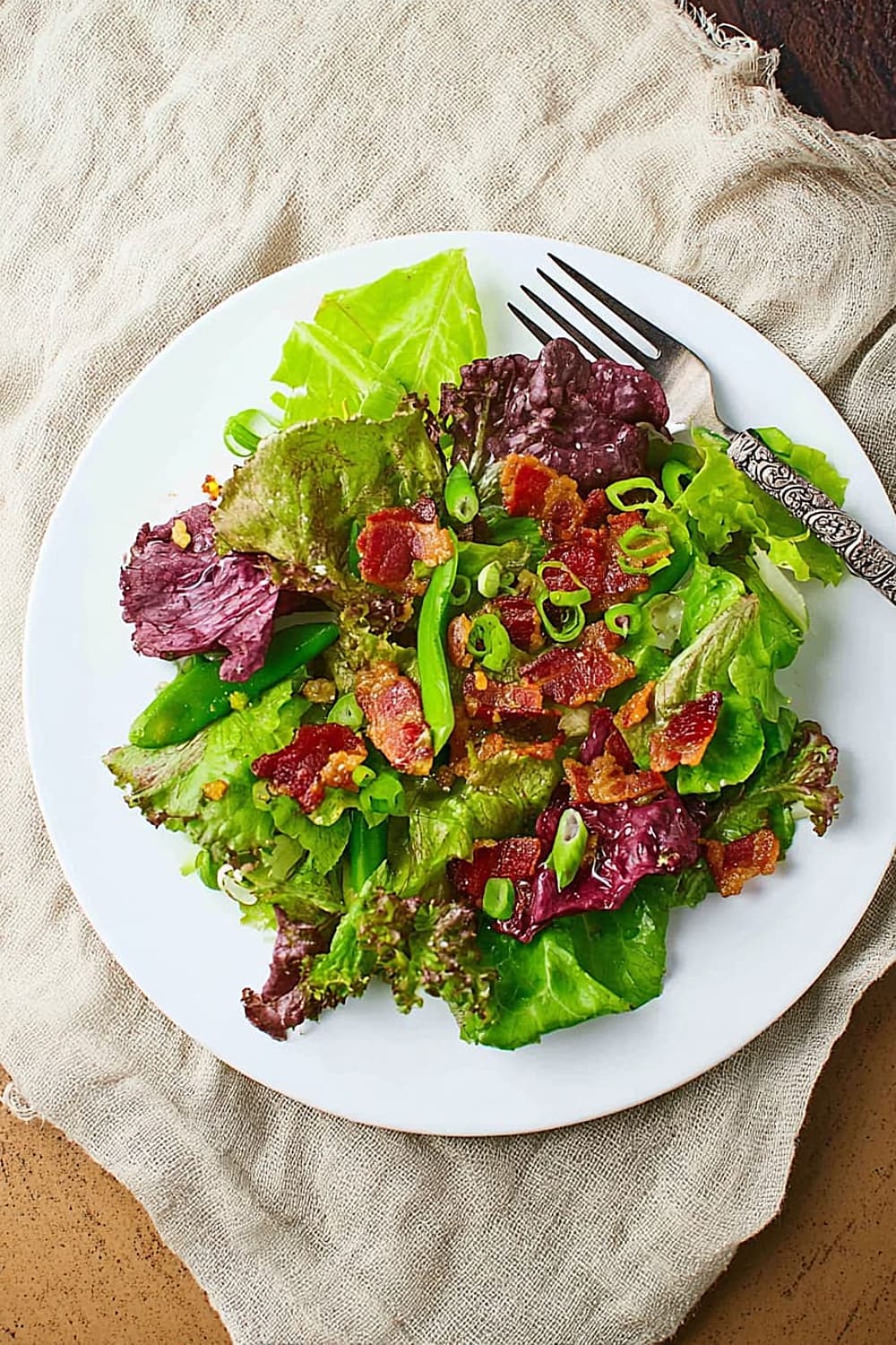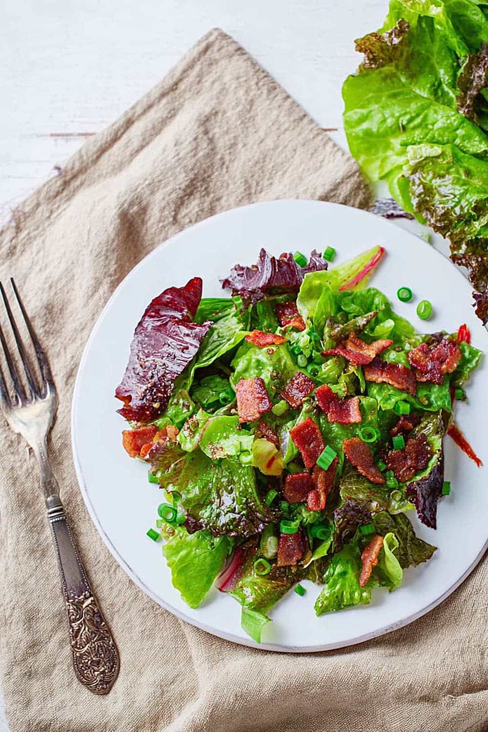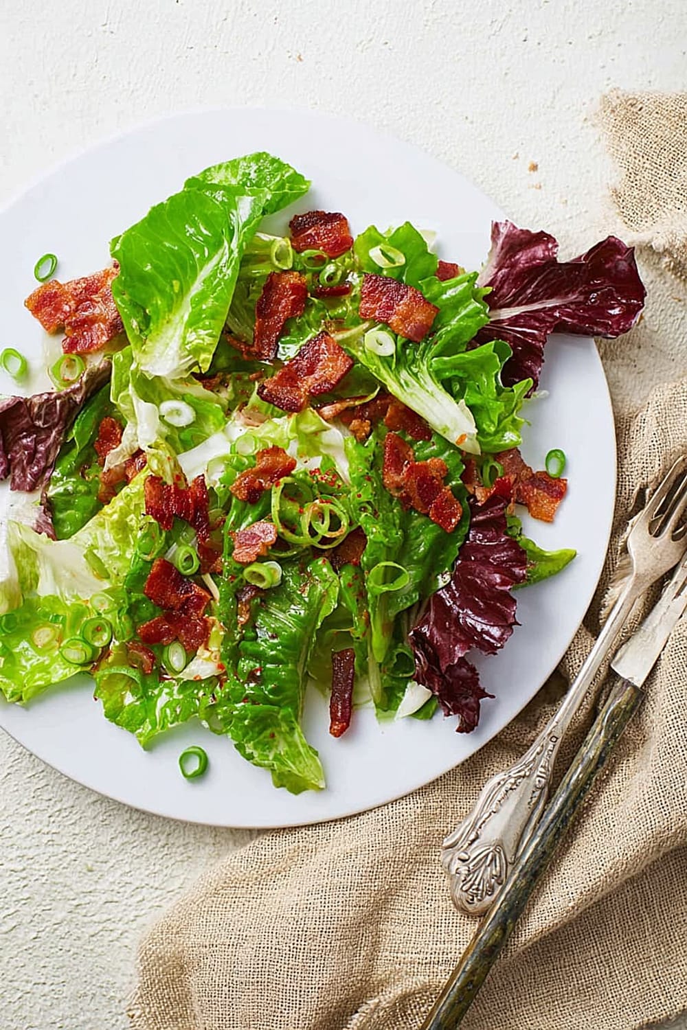 Never let the lettuce sit with dressing – it becomes soggy within minutes. If your bacon doesn’t render enough fat, resist adding oil until after removing the bacon, then add 1-2 tablespoons neutral oil to the pan. Don’t skip the sugar – it balances the vinegar’s acidity and helps create the signature sweet-tangy flavor profile. Wet lettuce is the enemy – even small amounts of water will dilute the dressing and create a watery mess.