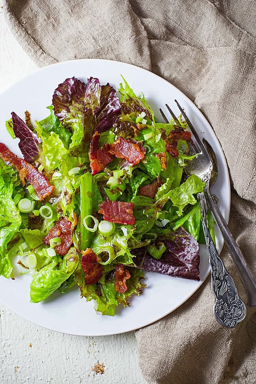 Picture this: crisp bacon crackling in the pan, releasing its smoky fat that becomes the base for a tangy-sweet dressing.