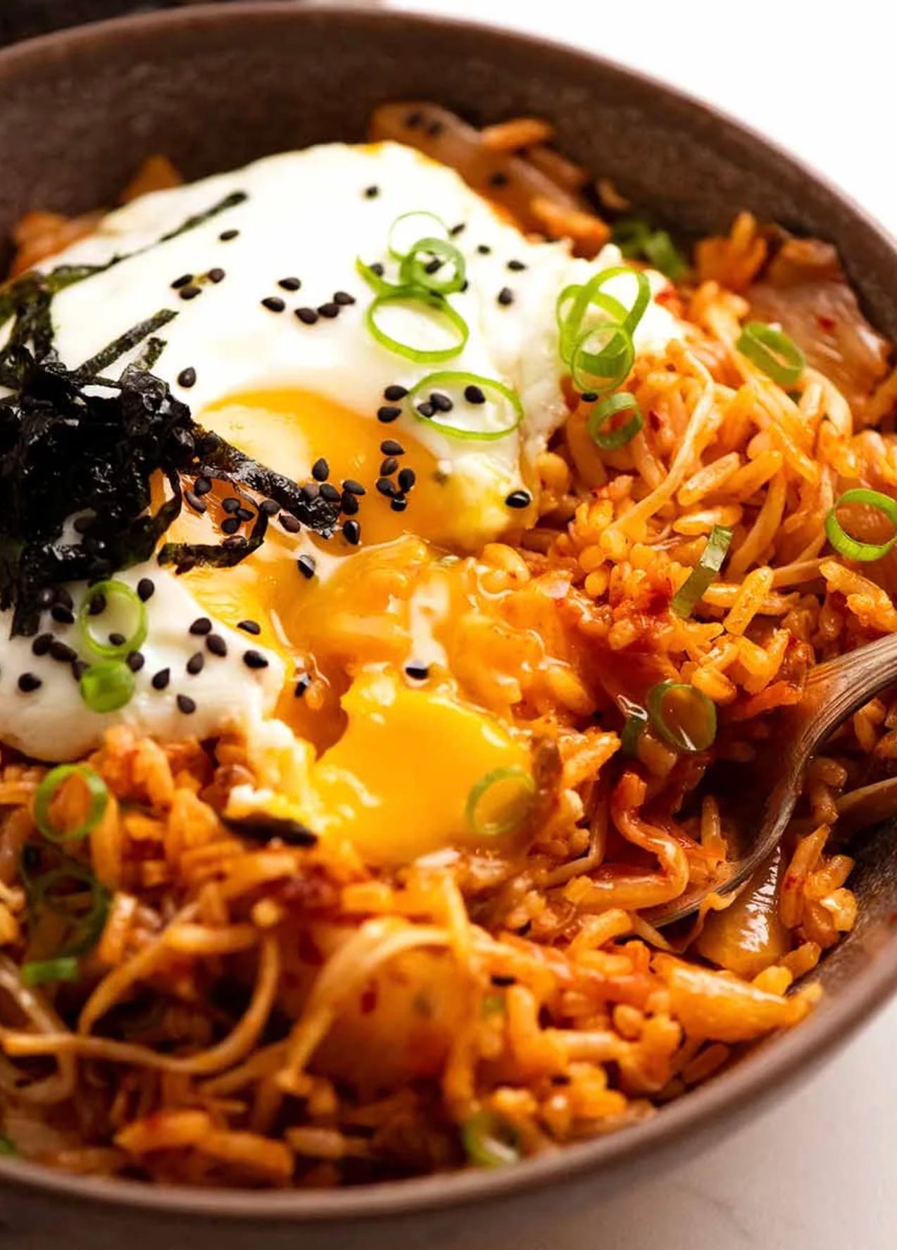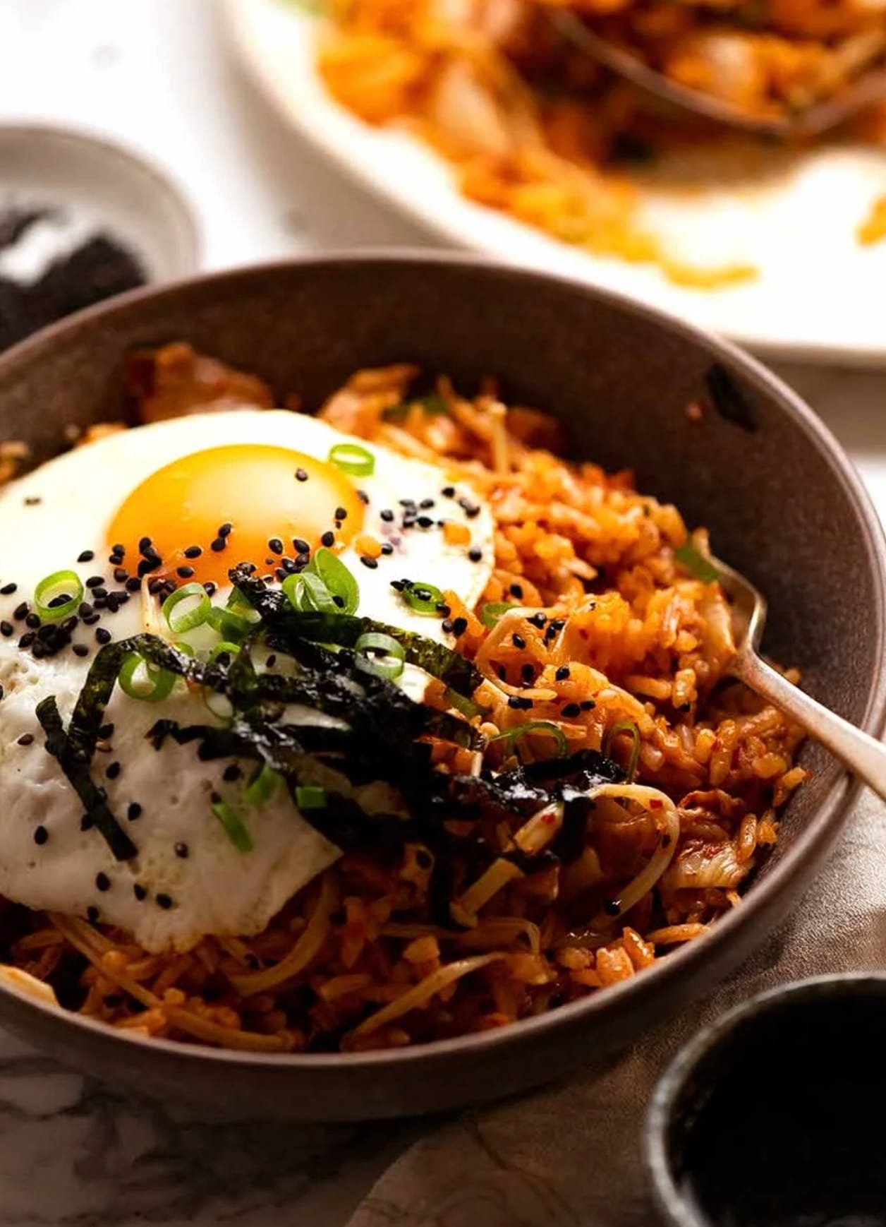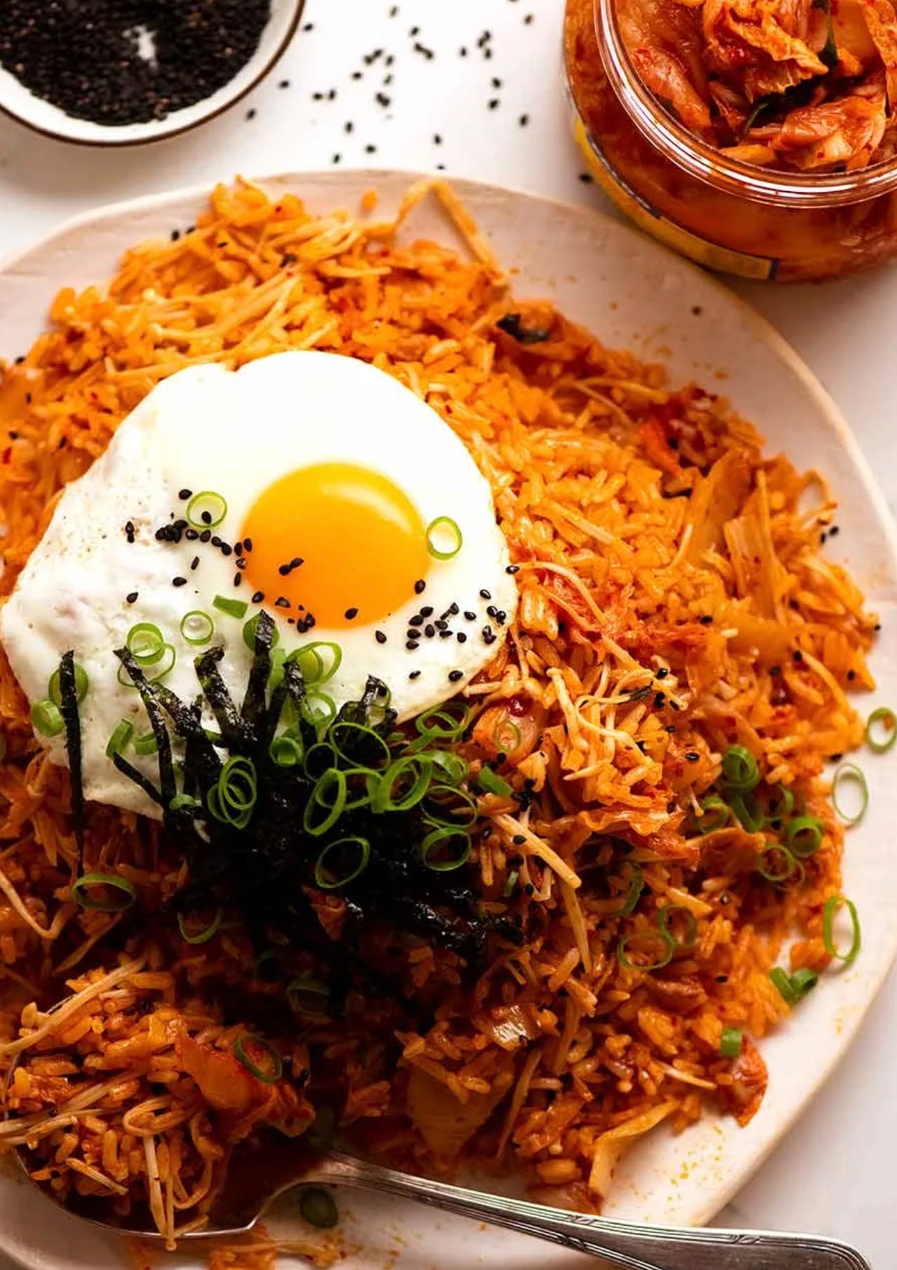 Now you’re done! Top your kimchi fried rice with a fried egg, green onions, or seaweed if you like. Enjoy your yummy Korean dish!