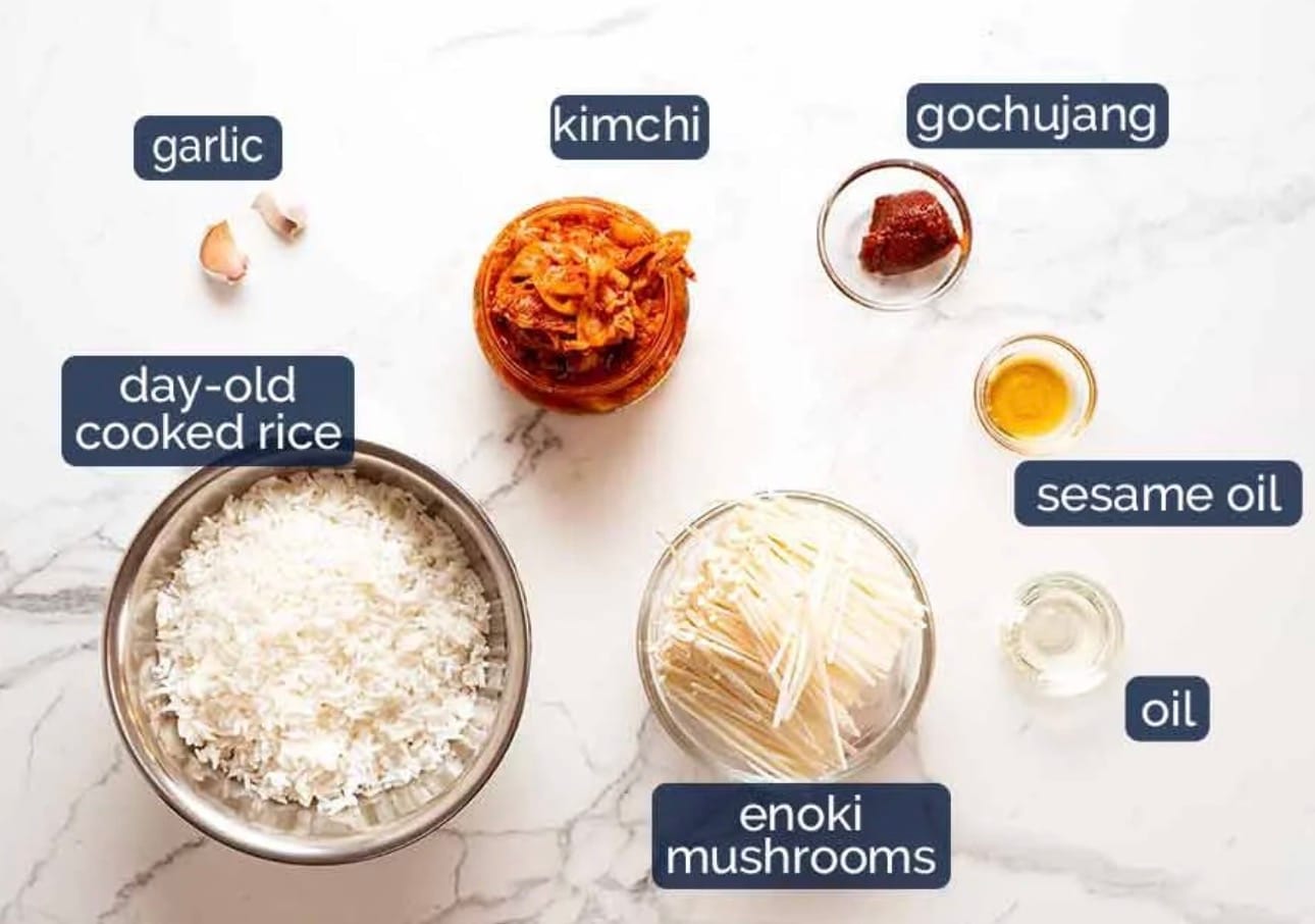 You’ll love how easy it is to make. Just stir-fry some garlic and kimchi, add rice and seasonings, then toss in some enoki mushrooms. Top it with a fried egg for extra yumminess. It’s a great way to spice up your weeknight dinners or impress friends with your Korean cooking skills.