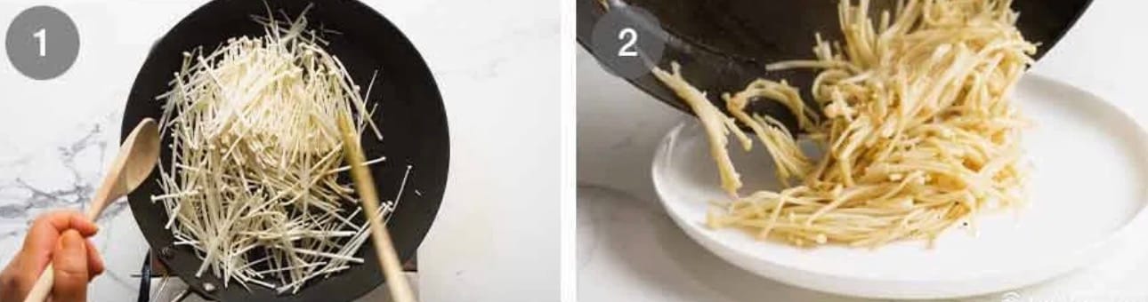 - Add enoki mushrooms back in, and toss through to disperse. You’re done!