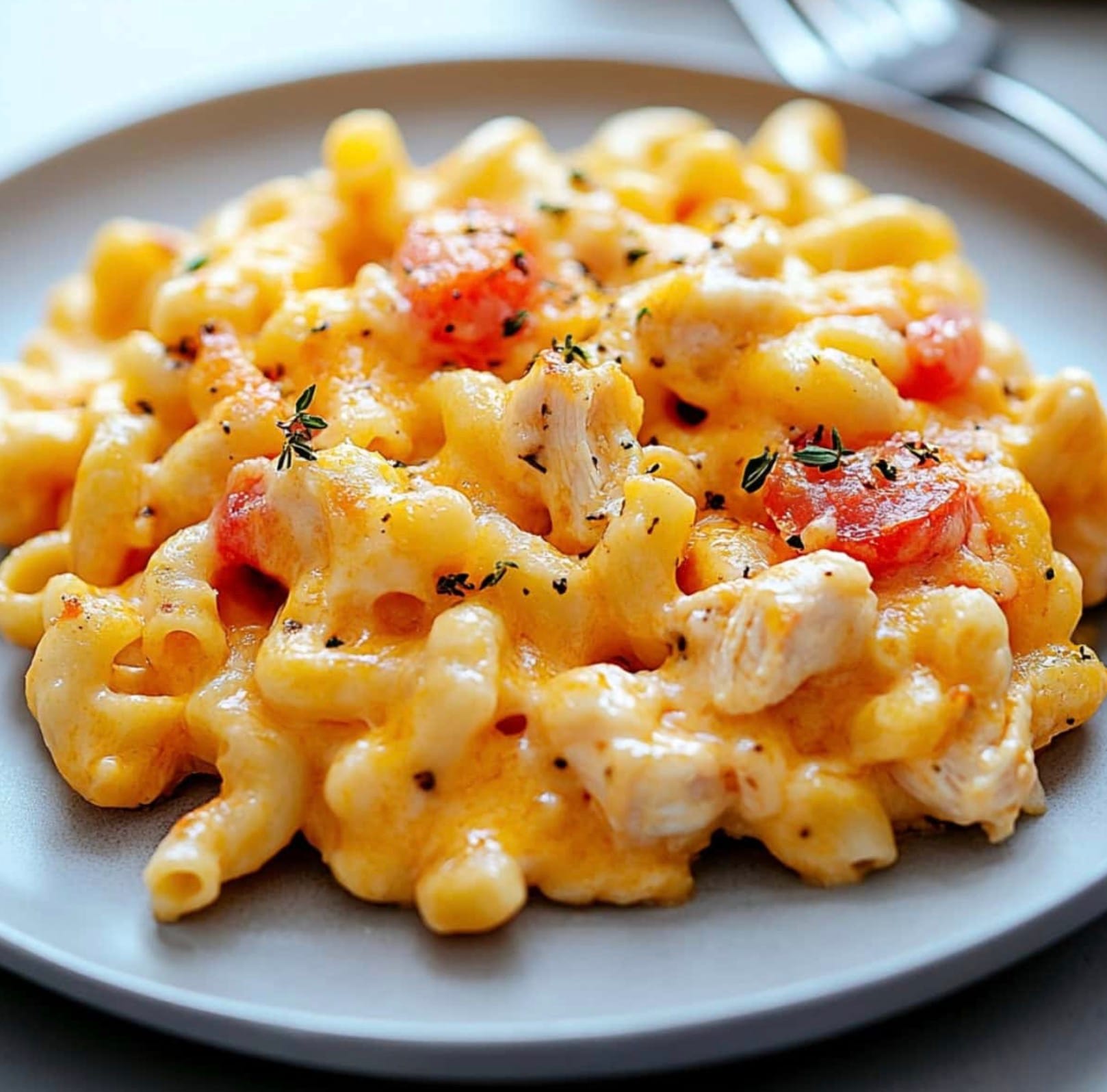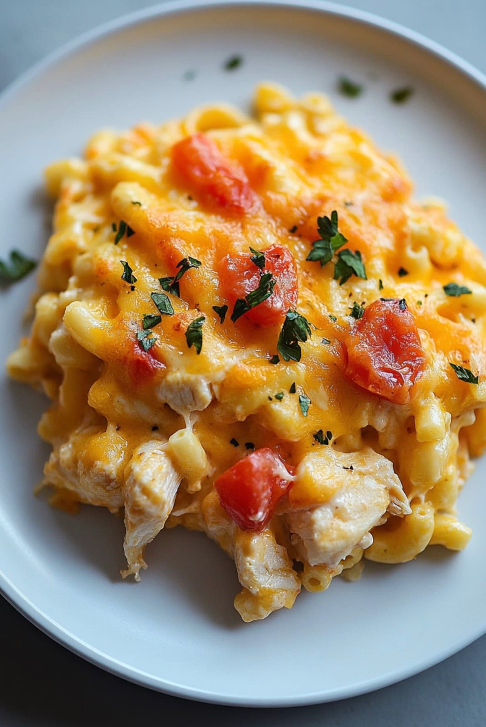 Ready in under an hour, this recipe is perfect for busy weeknights or weekend dinners with friends. The mix of Velveeta, cheddar, and cream of mushroom soup creates an ultra-creamy sauce that coats every bite. Top it all off with crunchy tortilla chips for added texture.