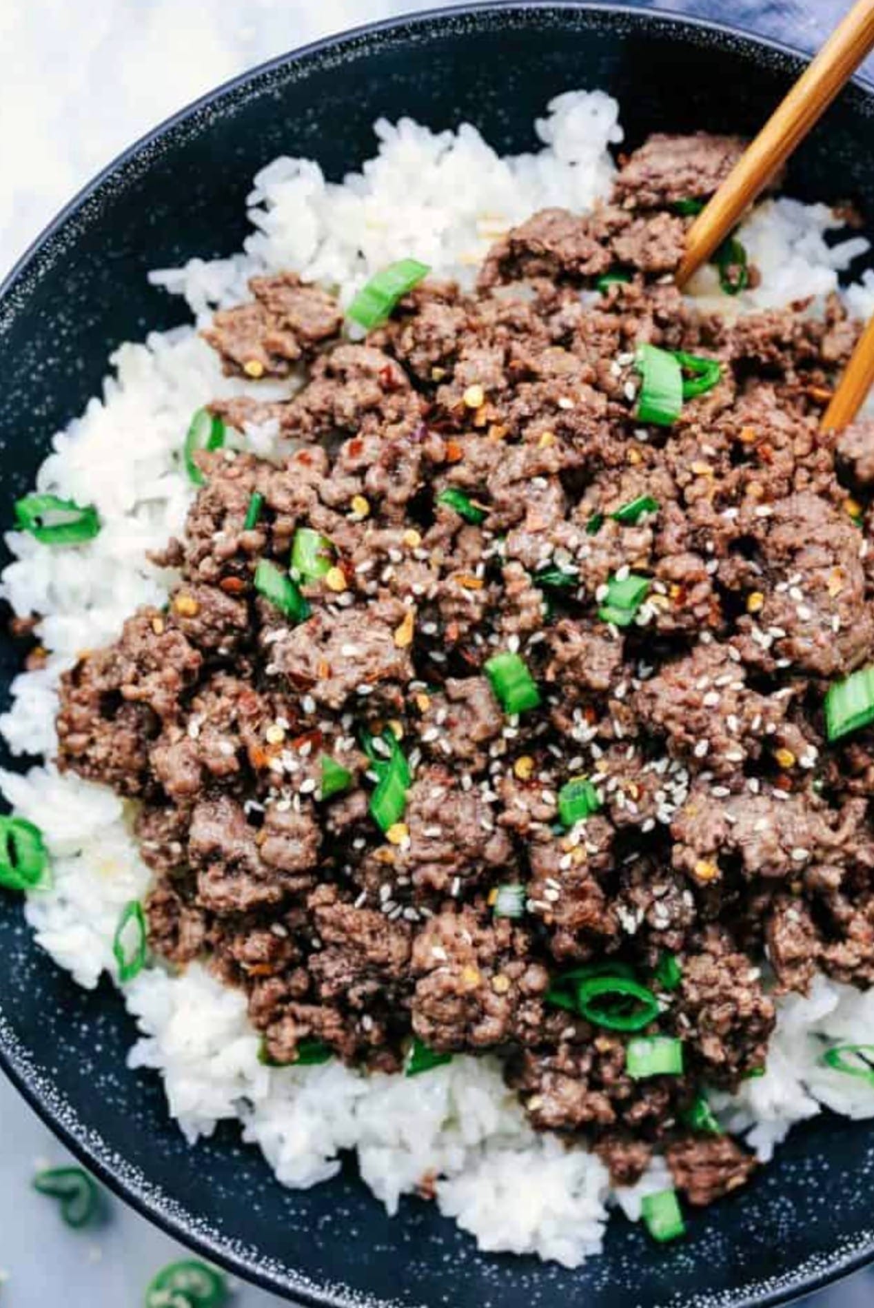 Serve the beef mixture over hot rice in individual bowls. Top with sliced green onions and a sprinkle of sesame seeds for extra flavor and crunch.