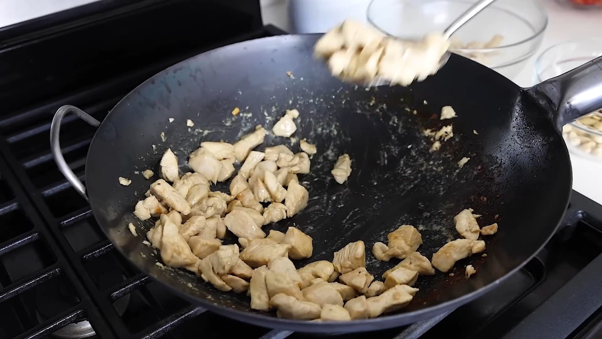 Add the marinated chicken to the wok and stir-fry for 3-4 minutes, until cooked through.