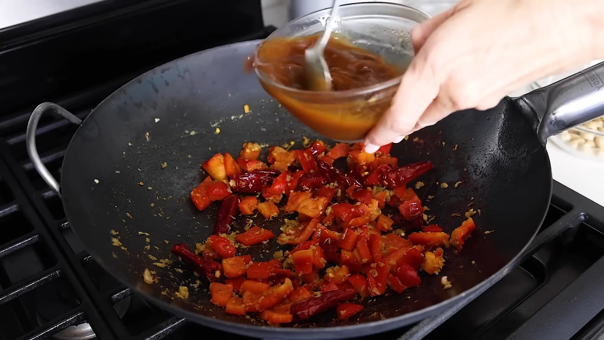 Stir the Kung Pao sauce to recombine the cornstarch.