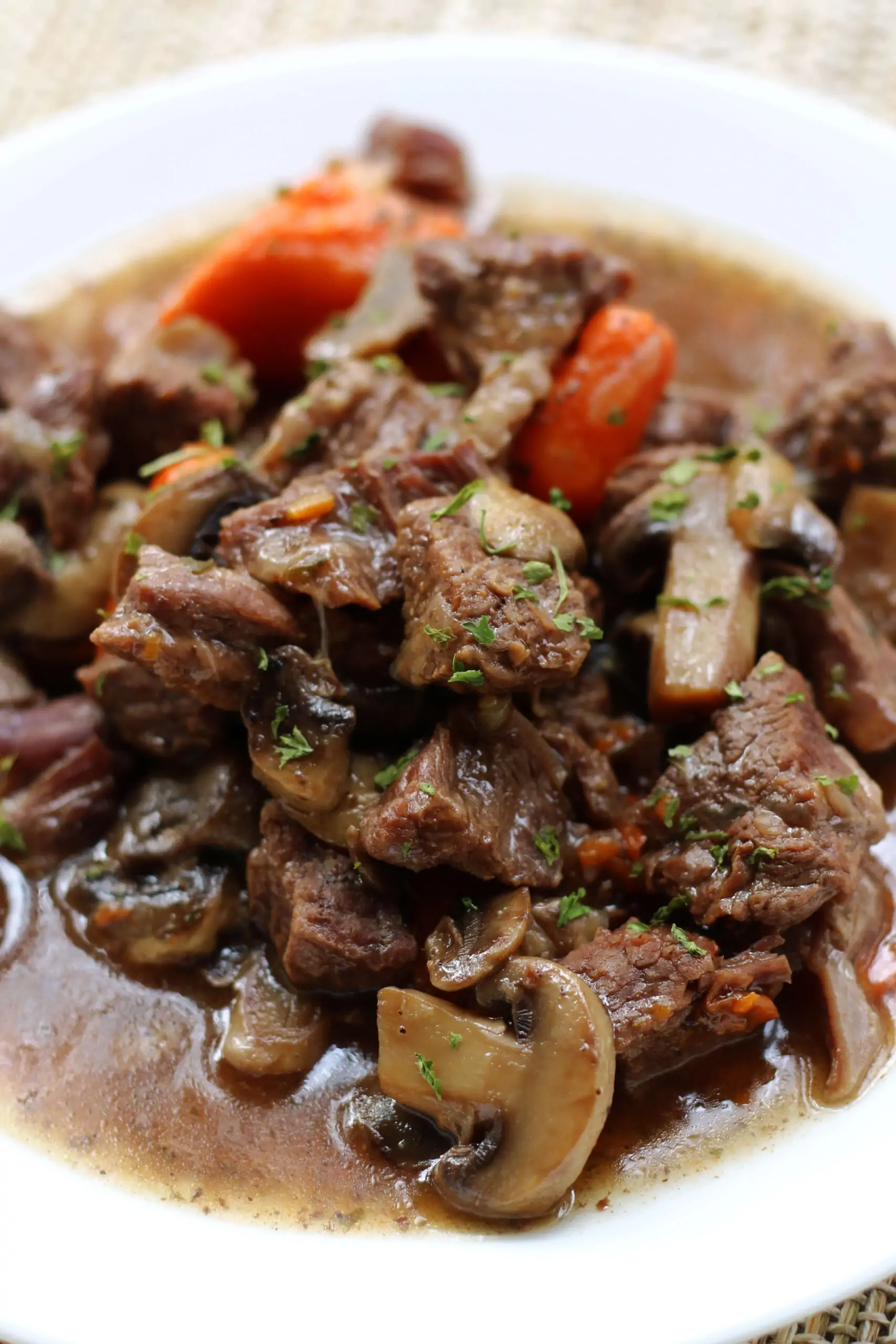 You’ll love the tender beef, savory mushrooms, and flavorful gravy in this dish. It’s great on its own or served over noodles or potatoes. Give it a try for your next family dinner!