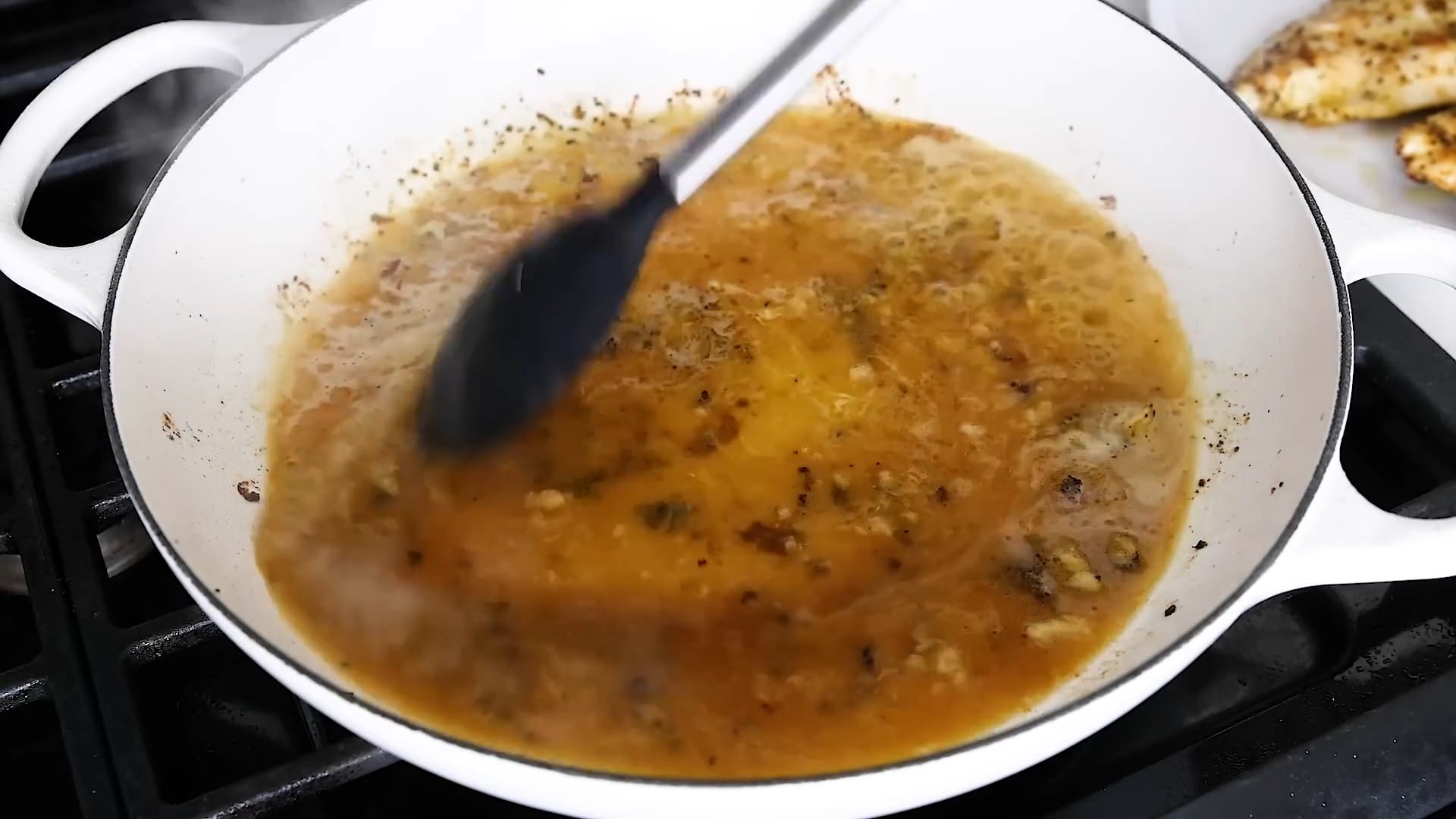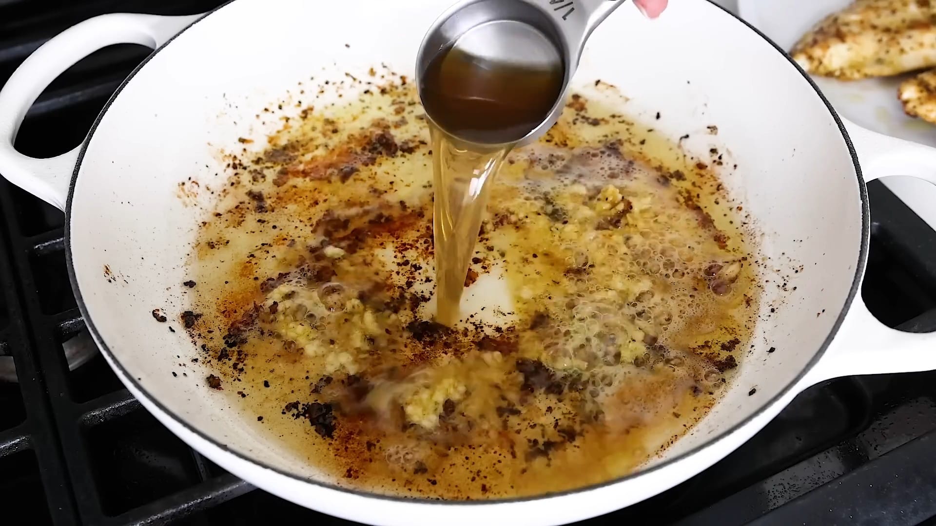Deglaze the pan, scraping up any browned bits from the bottom.