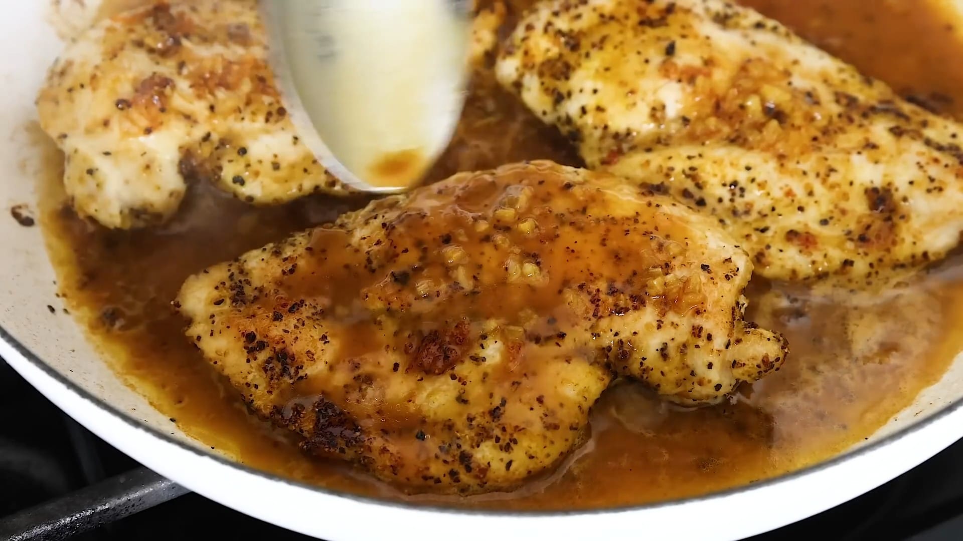 Spoon the sauce over the chicken.