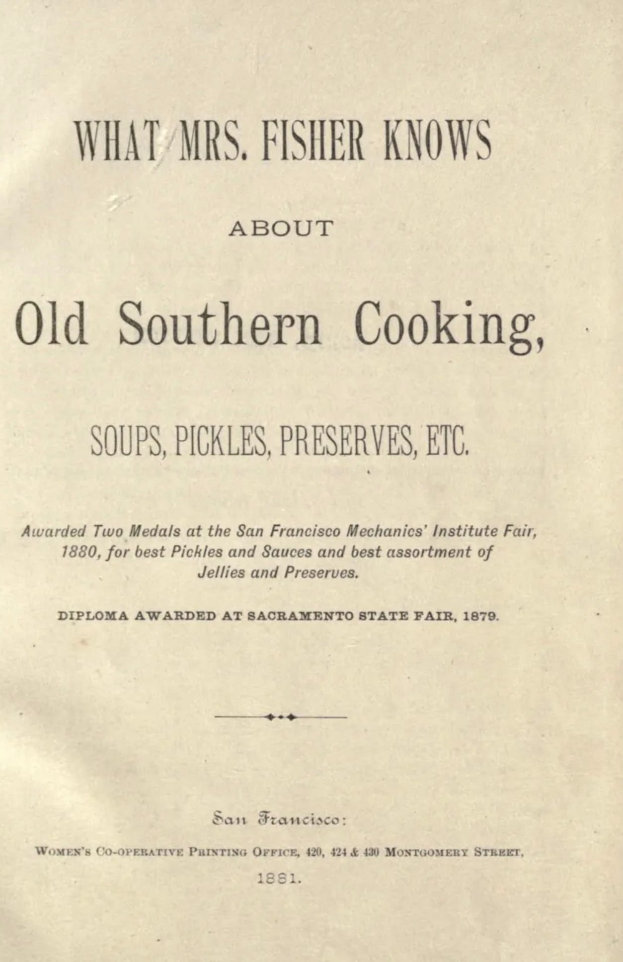 Mrs. Fisher was born into slavery, yet went on to win medals at the San Francisco Mechanics’ Institute Fair in 1880 for her pickles, sauces, and preserves.