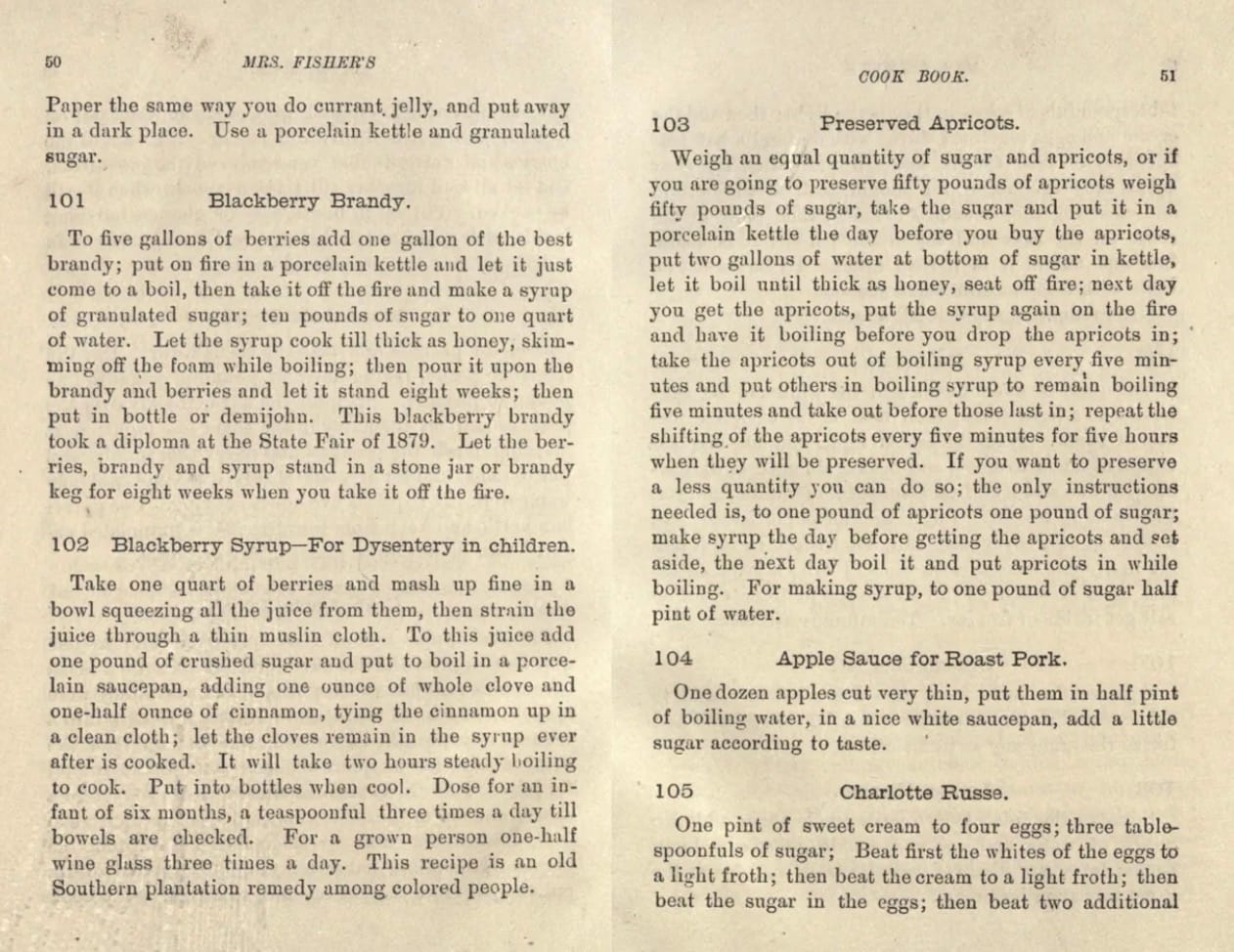 - Old plantation remedy Blackberry Brandy (won a diploma at the 1879 State Fair!)