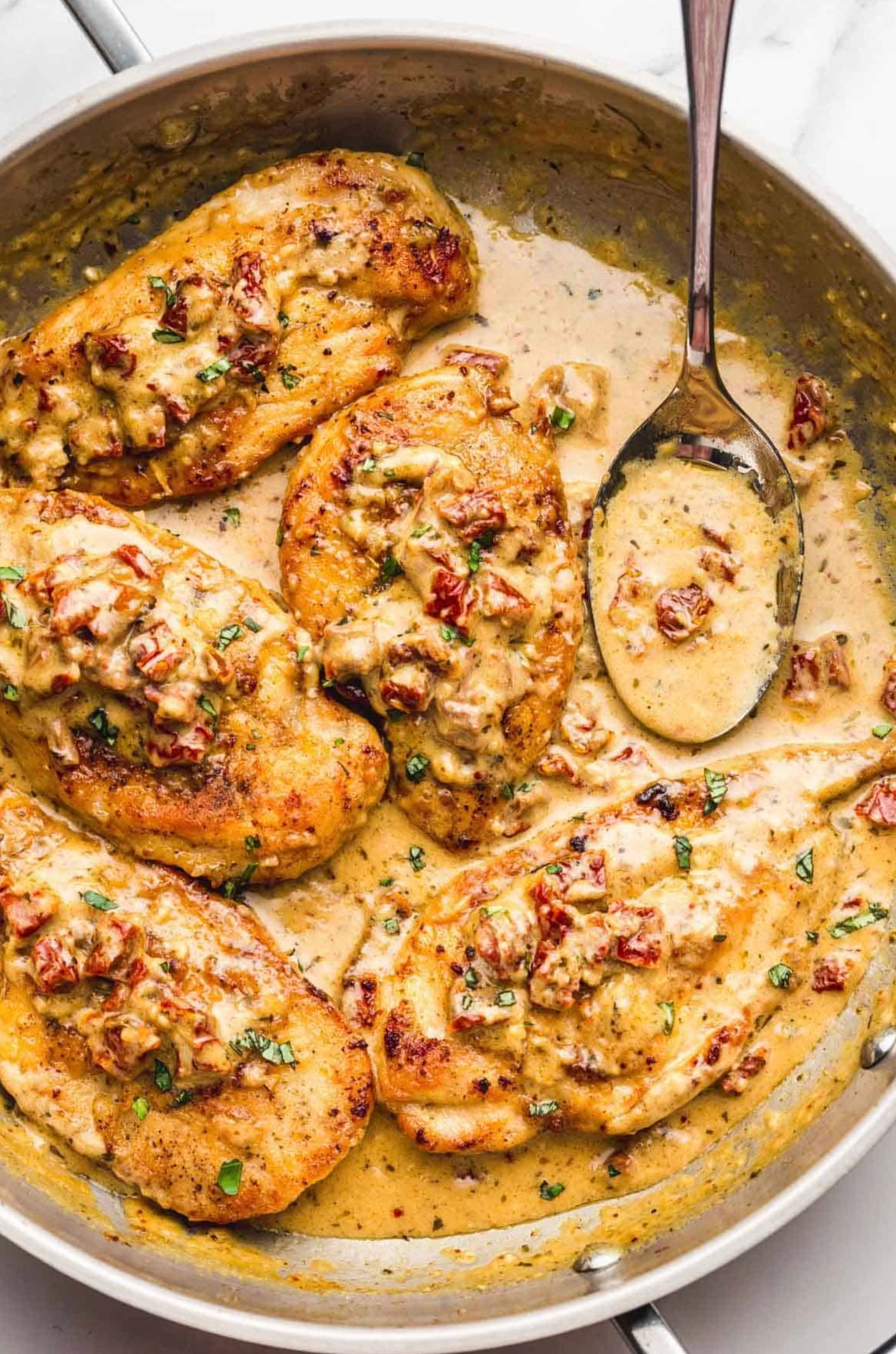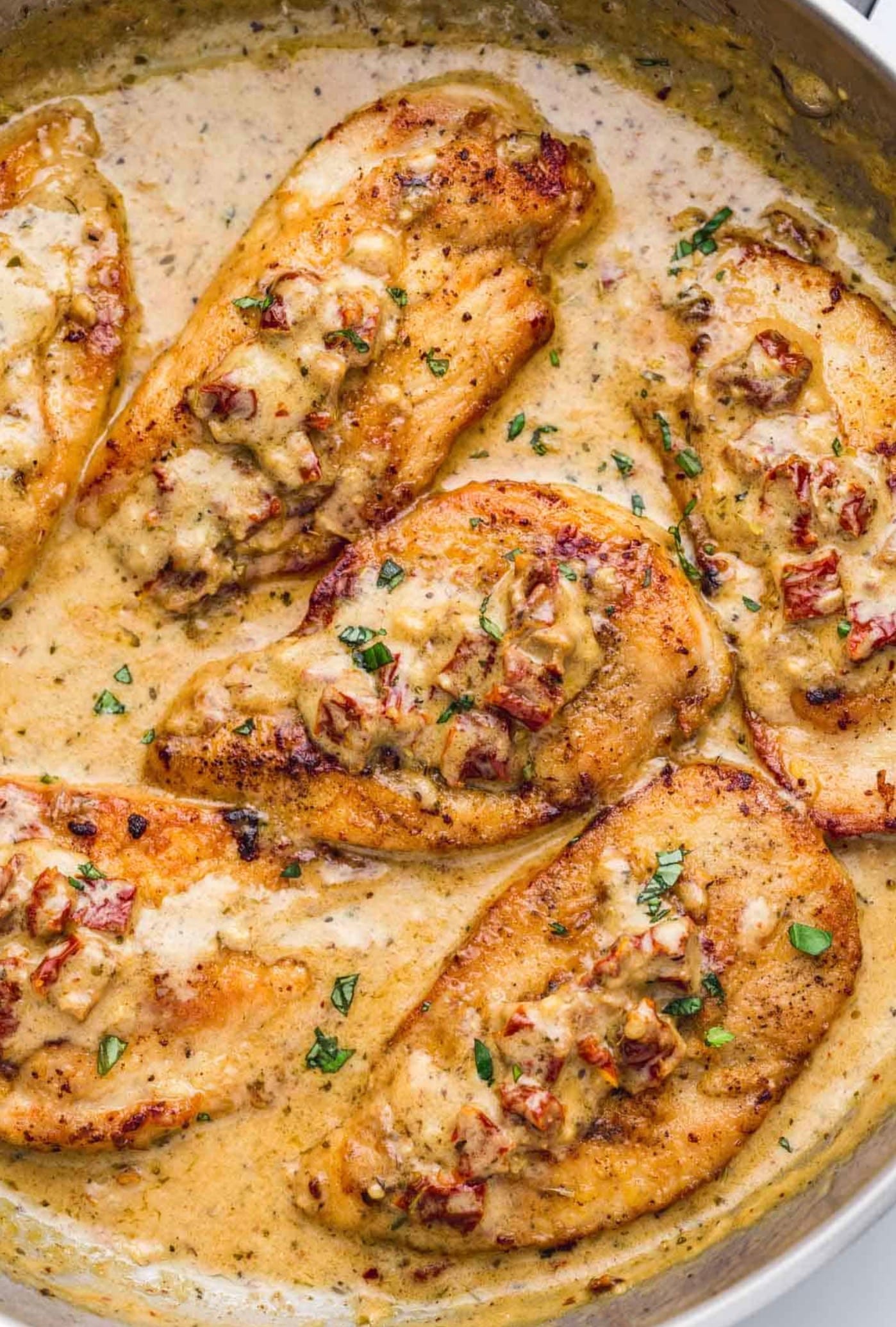 You’ll love how juicy and flavorful this chicken turns out. It’s cooked in a rich sauce with garlic, sundried tomatoes, and herbs. The cream and parmesan cheese make it extra indulgent. Serve it over pasta or rice for a meal that’s sure to impress.