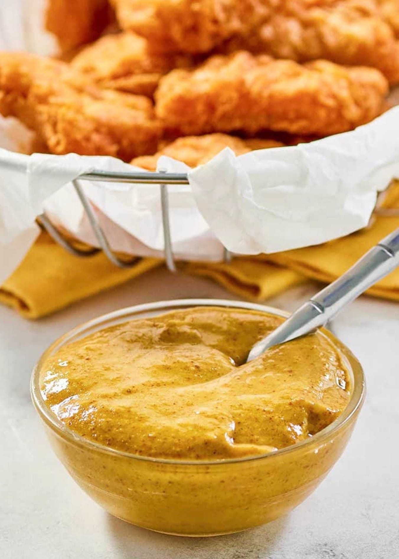 The key ingredients are brown mustard, corn syrup, and mustard powder. Add some spices and let it sit for a few hours. You’ll have a tasty dip for your nuggets or fries in no time. Try it and see how close it comes to the real thing!