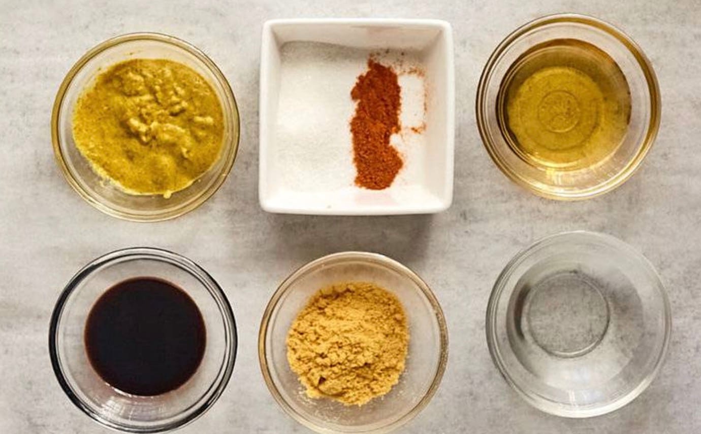 No mustard powder? Use extra regular mustard. Apple cider vinegar can stand in for white vinegar. Worcestershire sauce is a good swap for soy sauce.