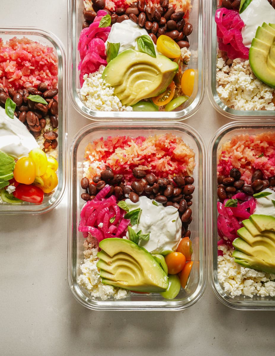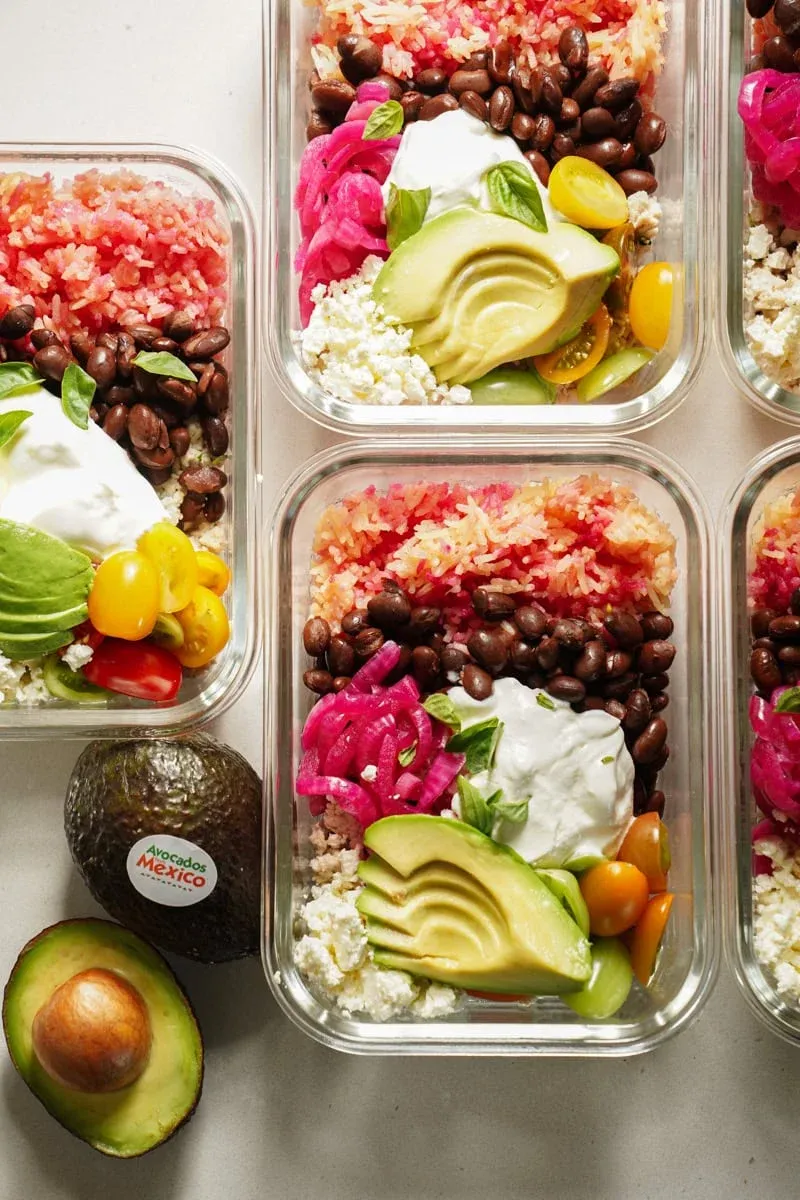 Get ready to impress yourself and your coworkers with these colorful, delicious bowls. From the pink rice to the zesty pickled onions, every bite is a treat. Let’s dive in and make your meal prep dreams come true, Emily!