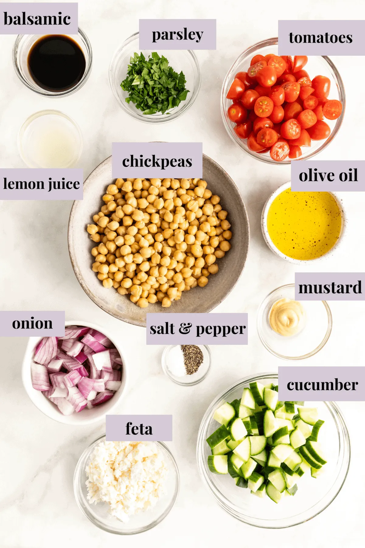 Here’s what you’ll need to make a tasty Mediterranean chickpea salad: