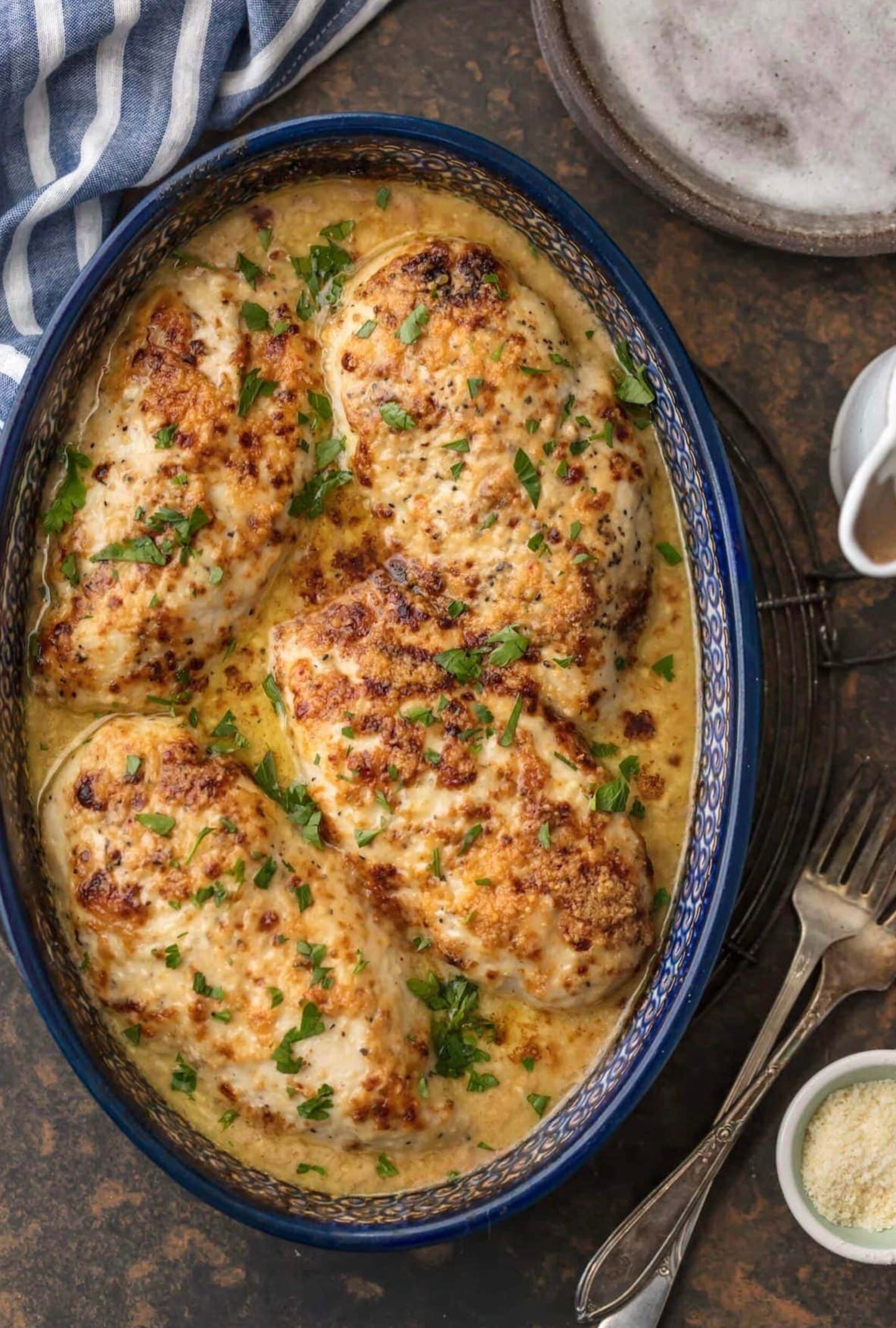 To save time, prep the chicken and sauce mixture the night before. Store separately in the fridge and assemble just before baking.