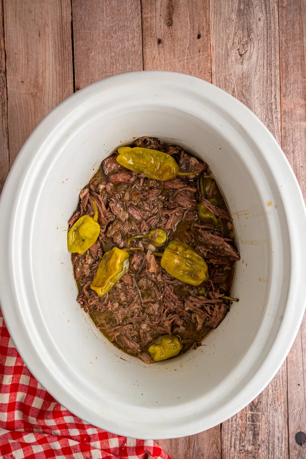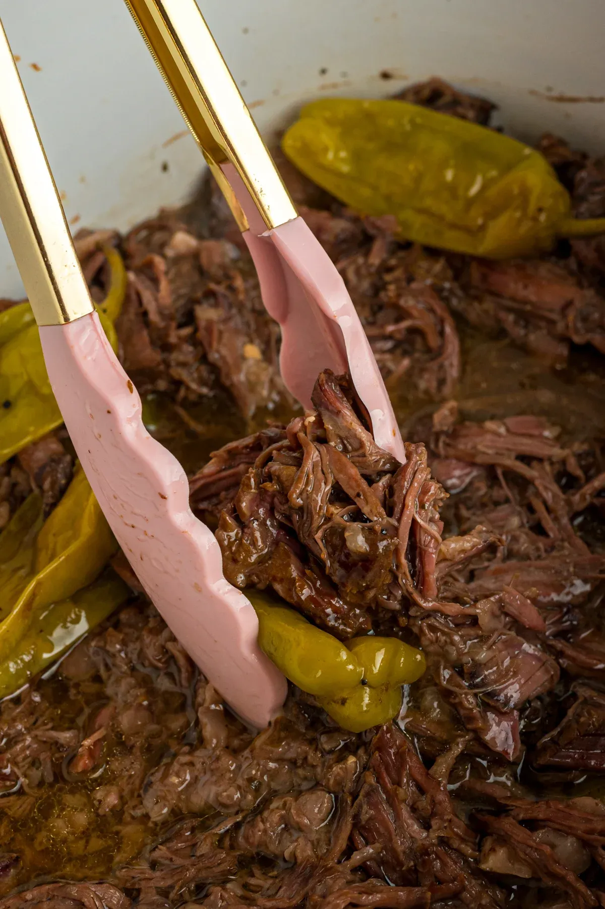 If you’re out of pepperoncini peppers, try banana peppers or pickled jalapeños. For less heat, use mild pickled peppers or even sliced dill pickles.