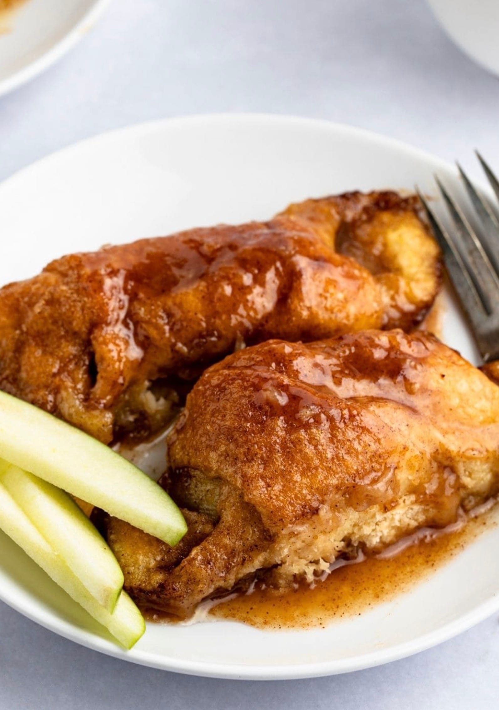 To make these apple dumplings more suitable for people with diabetes, you can try a few changes. Use sugar-free crescent roll dough instead of regular. This cuts down on carbs and sugar.