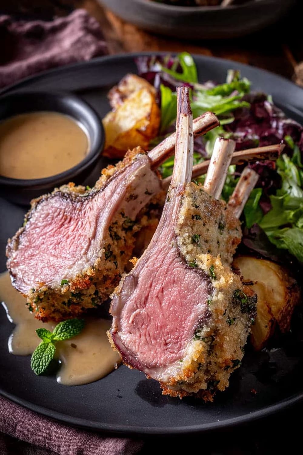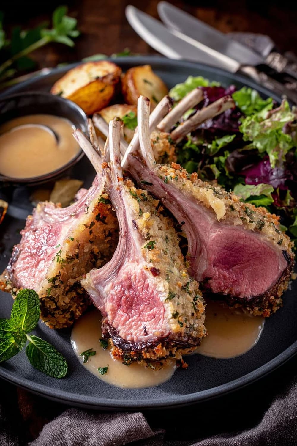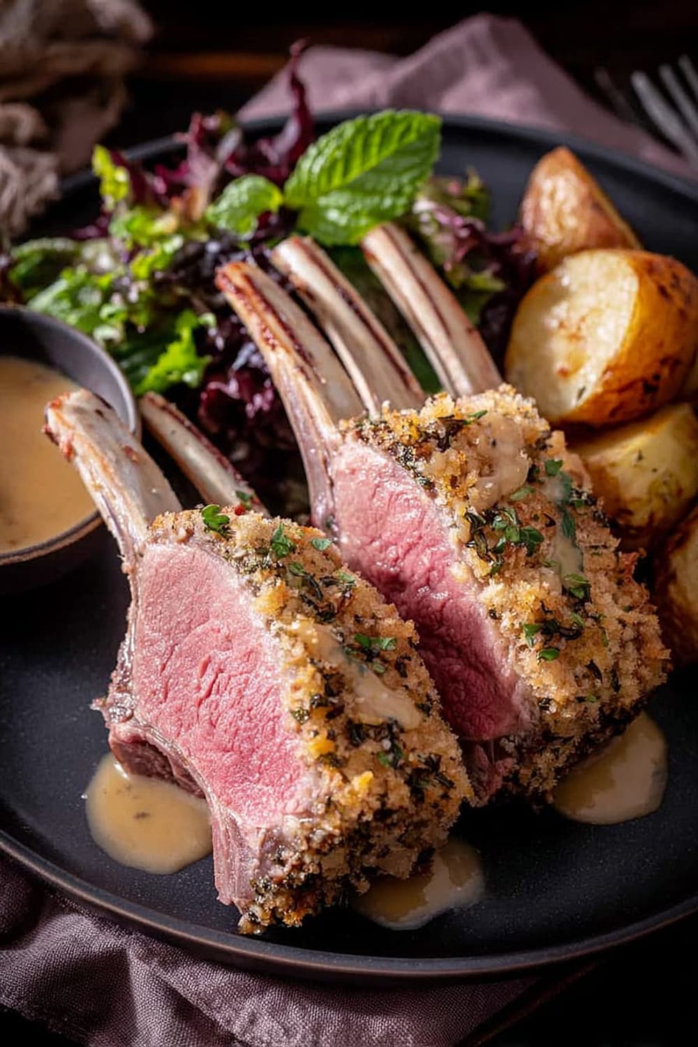 - Grill adaptation – Sear the crusted lamb on a hot grill, then move to indirect heat to finish cooking
