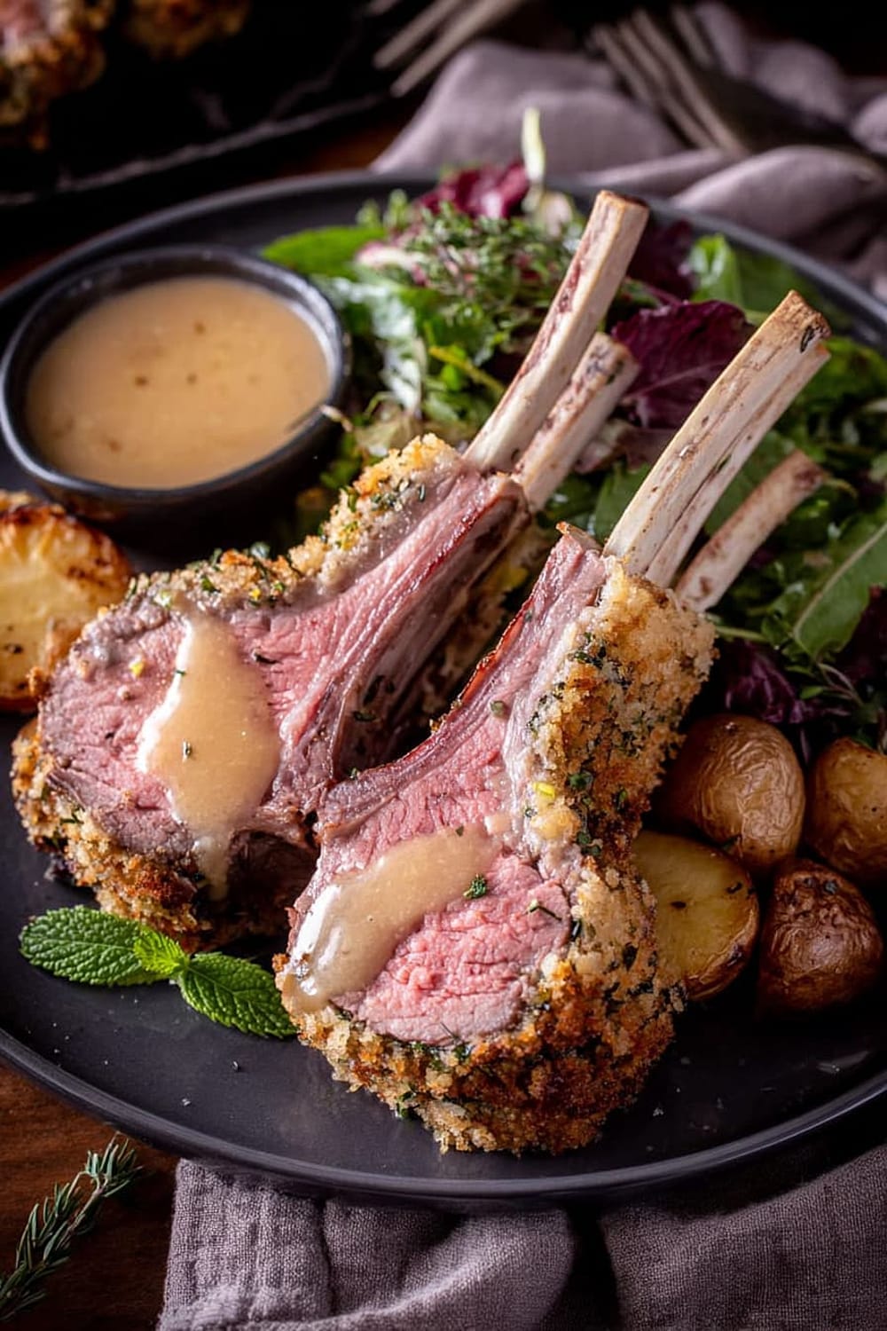 The mustard crust isn’t just for show – it creates this incredible tangy, herb-packed barrier that keeps the lamb juicy while adding serious flavor depth.
