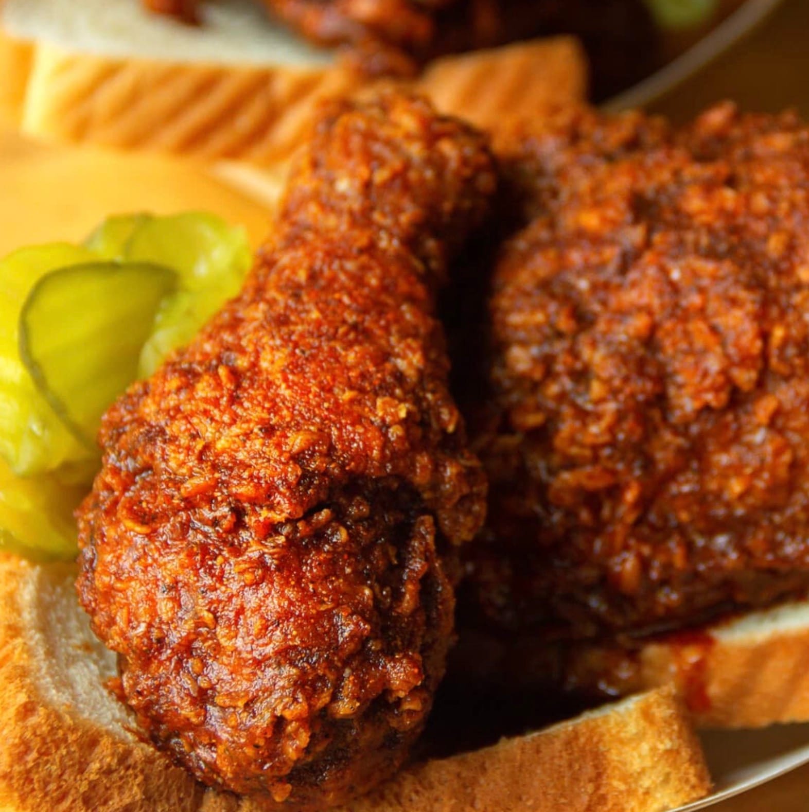 Your Nashville hot chicken is ready! Serve it up and enjoy the fiery feast.