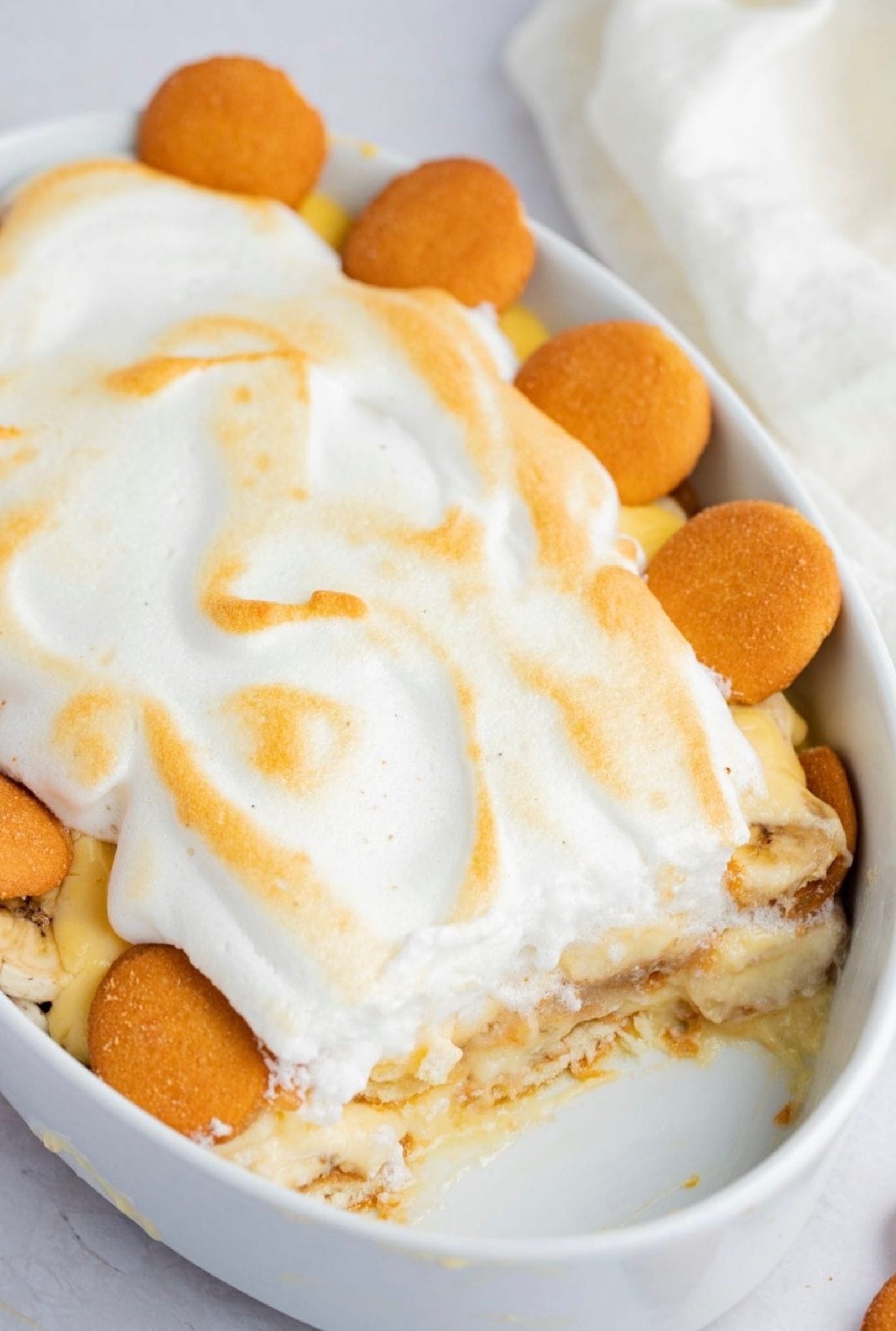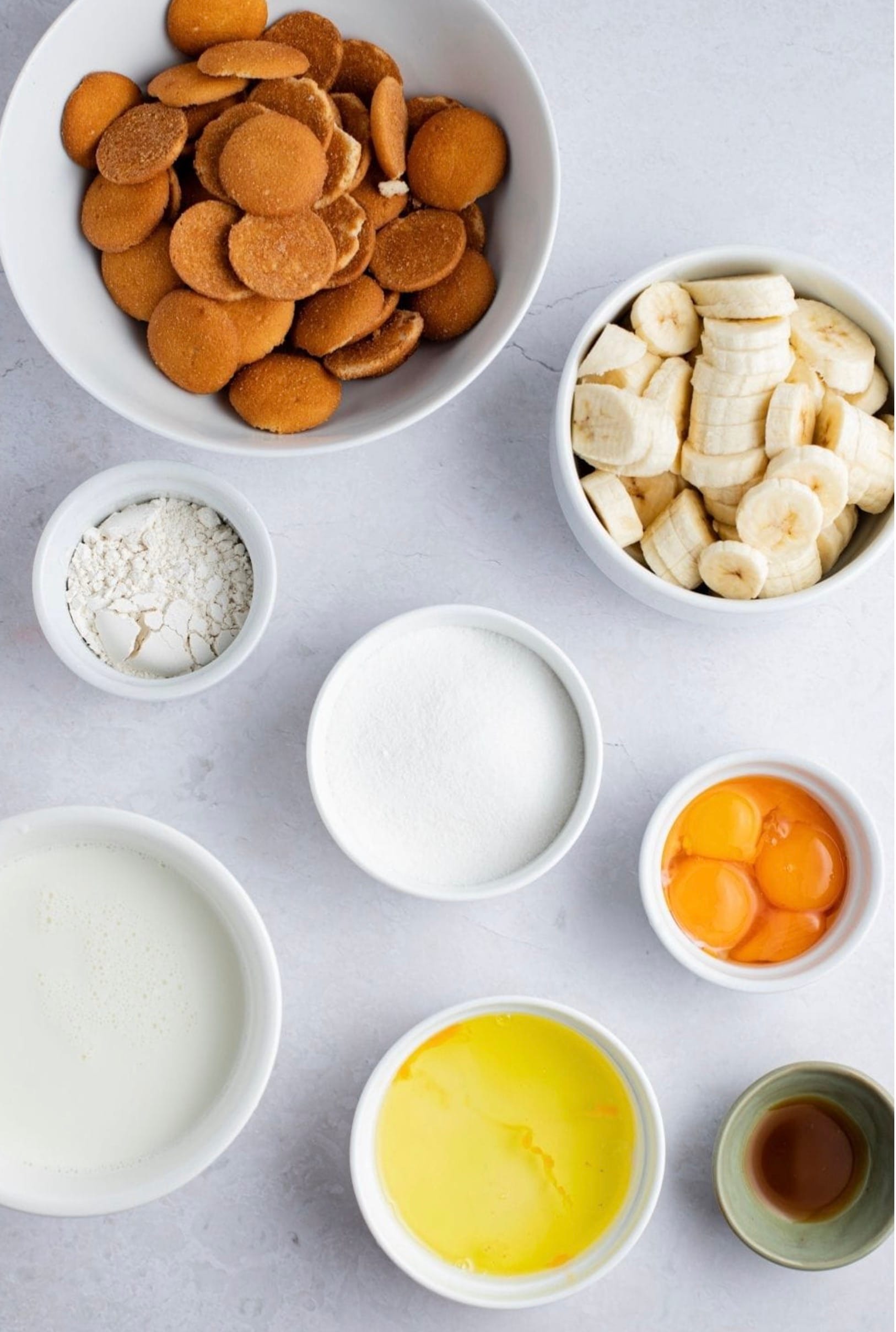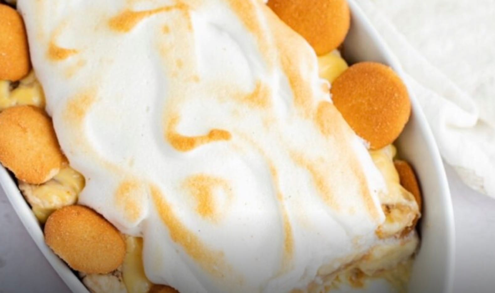The ingredients are simple and easy to find. You’ll need sugar, flour, eggs, milk, vanilla, Nilla Wafers, and ripe bananas. The pudding is made from scratch, giving it a rich, homemade taste. The layers of cookies, bananas, and custard are topped with a fluffy meringue for extra yumminess.