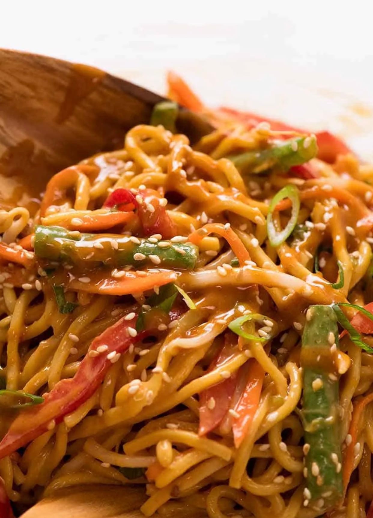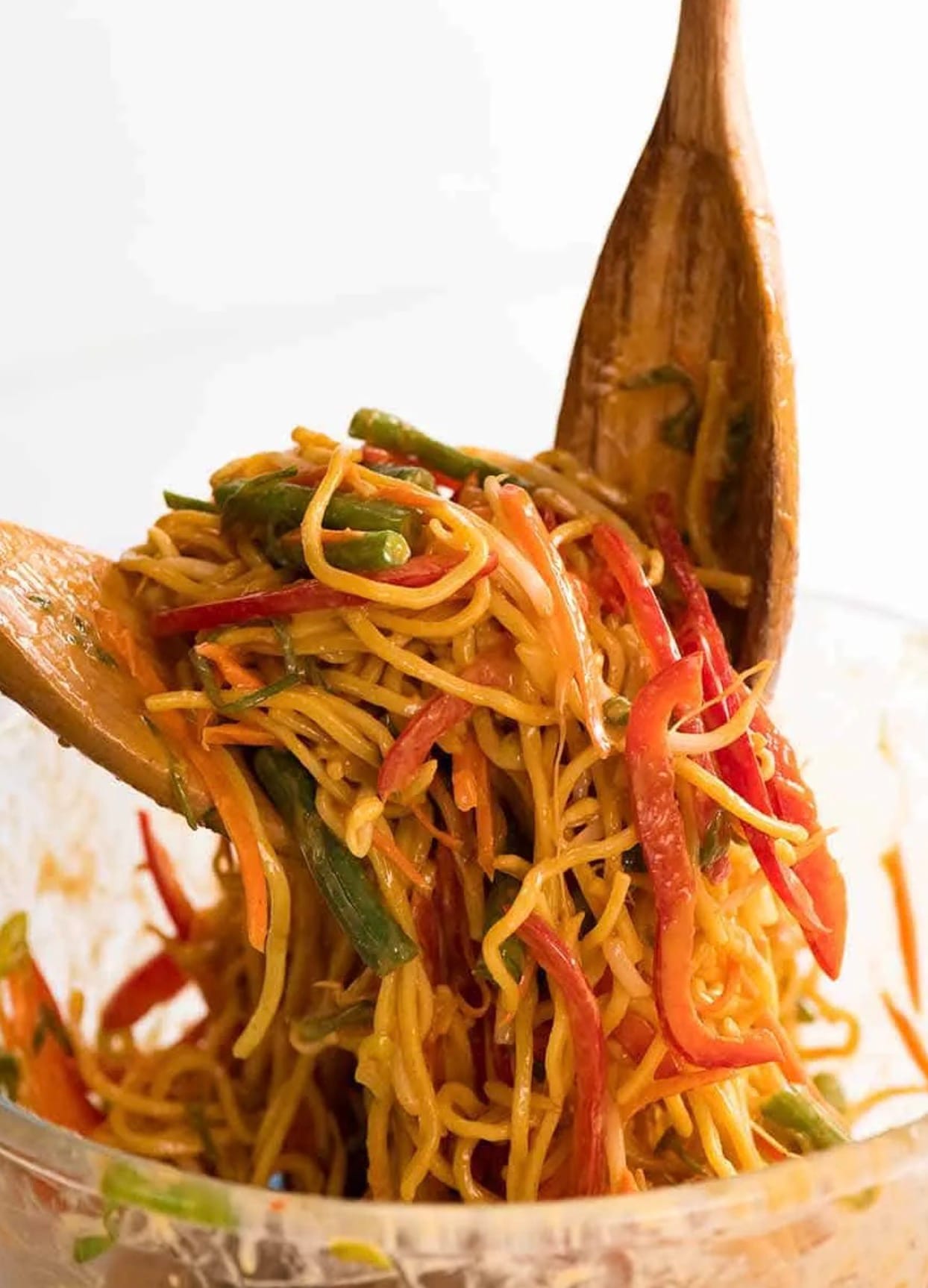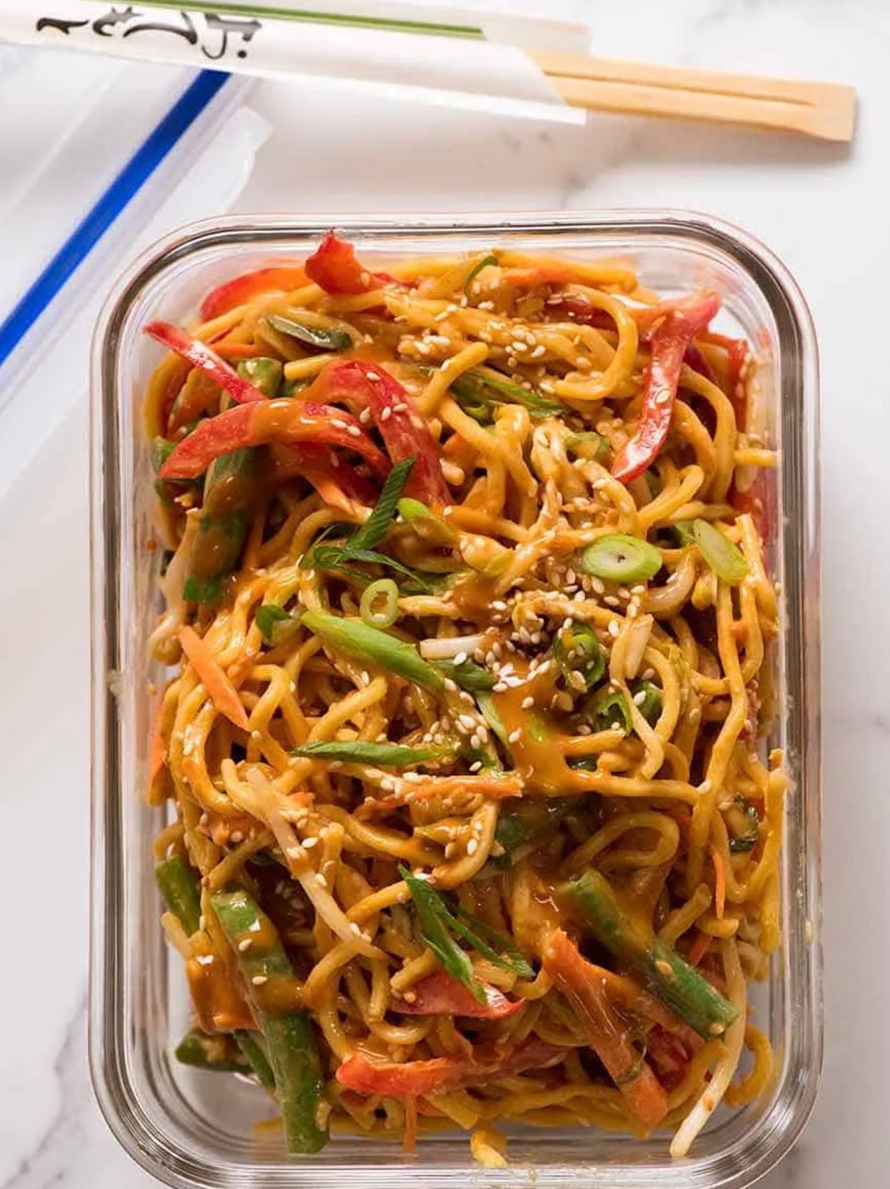 To save time, prep the veggies and dressing ahead. Store them separately in the fridge. When you’re ready to eat, just cook the noodles and toss everything together.