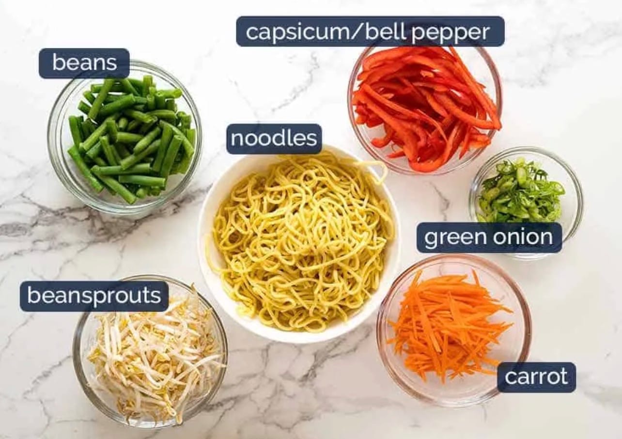 This noodle salad has two main parts: a flavorful dressing and a colorful mix of veggies and noodles. Let’s break down the exact ingredients you’ll need for each part.