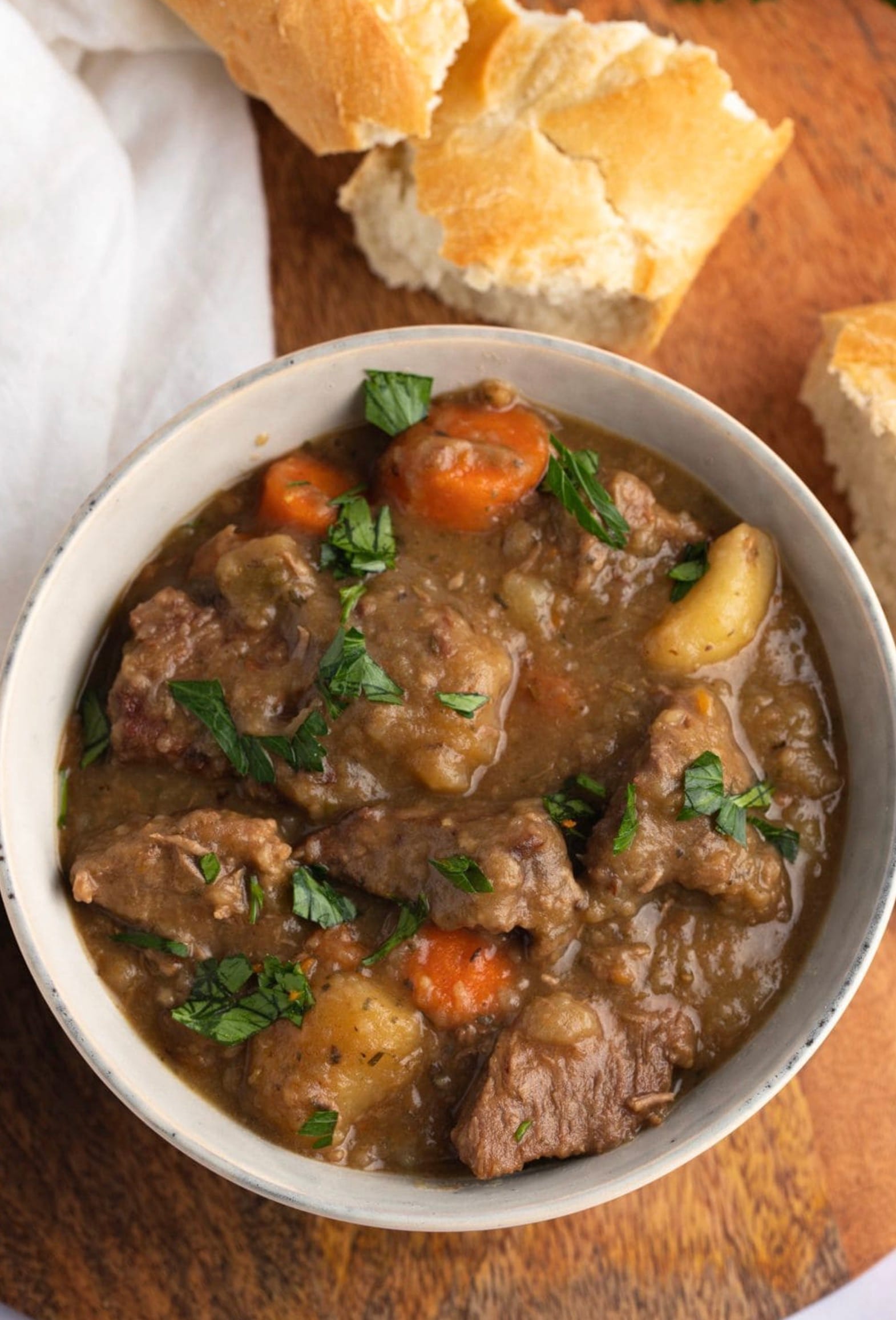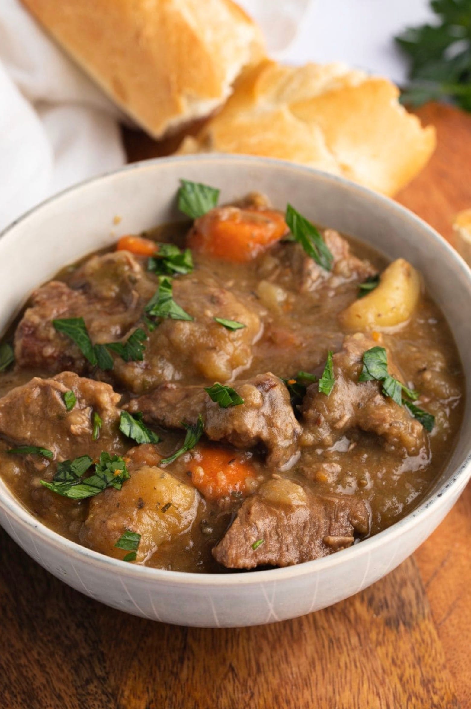 Don’t forget to grab a loaf of crusty French bread to serve with your stew. It’s perfect for soaking up all that tasty gravy!