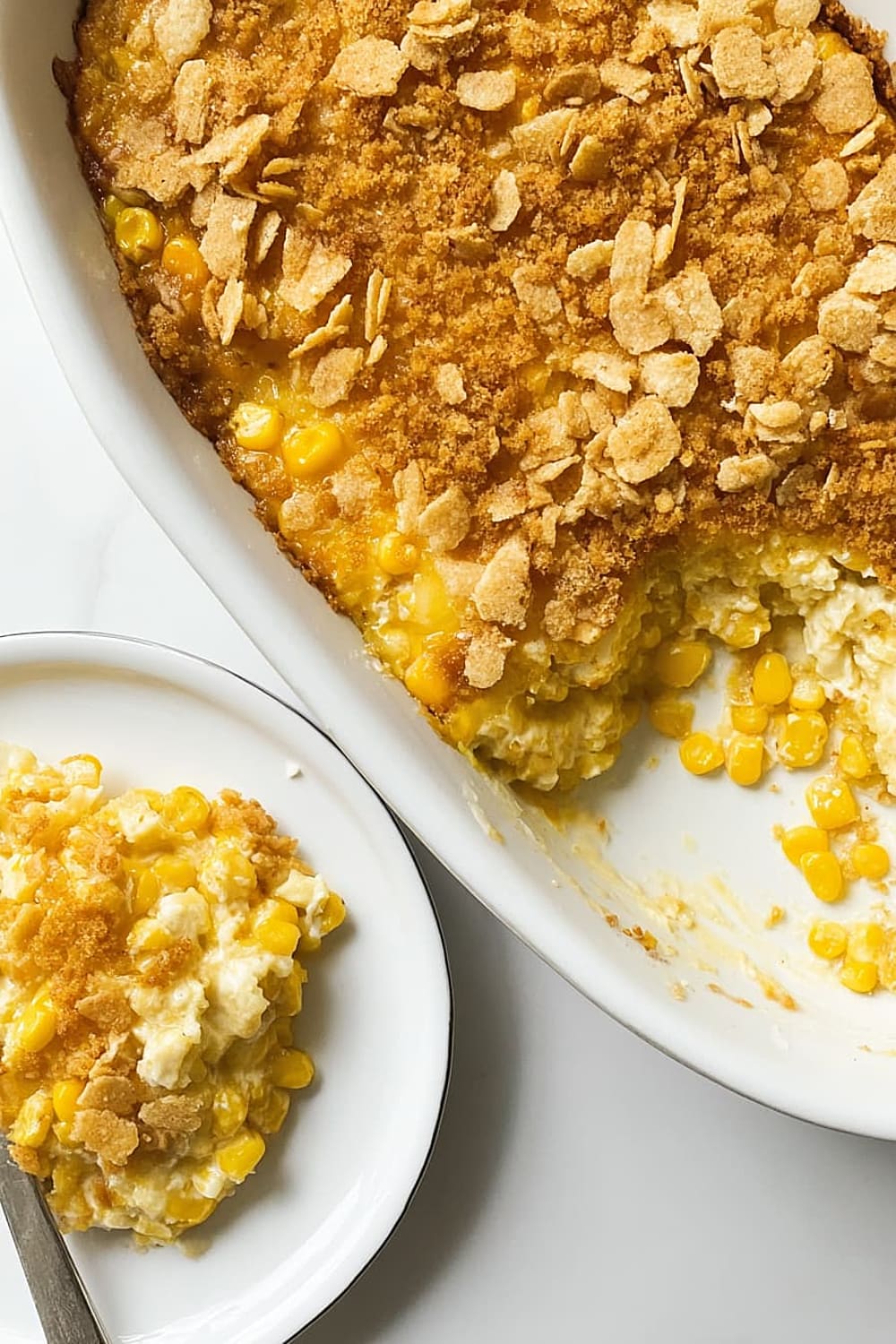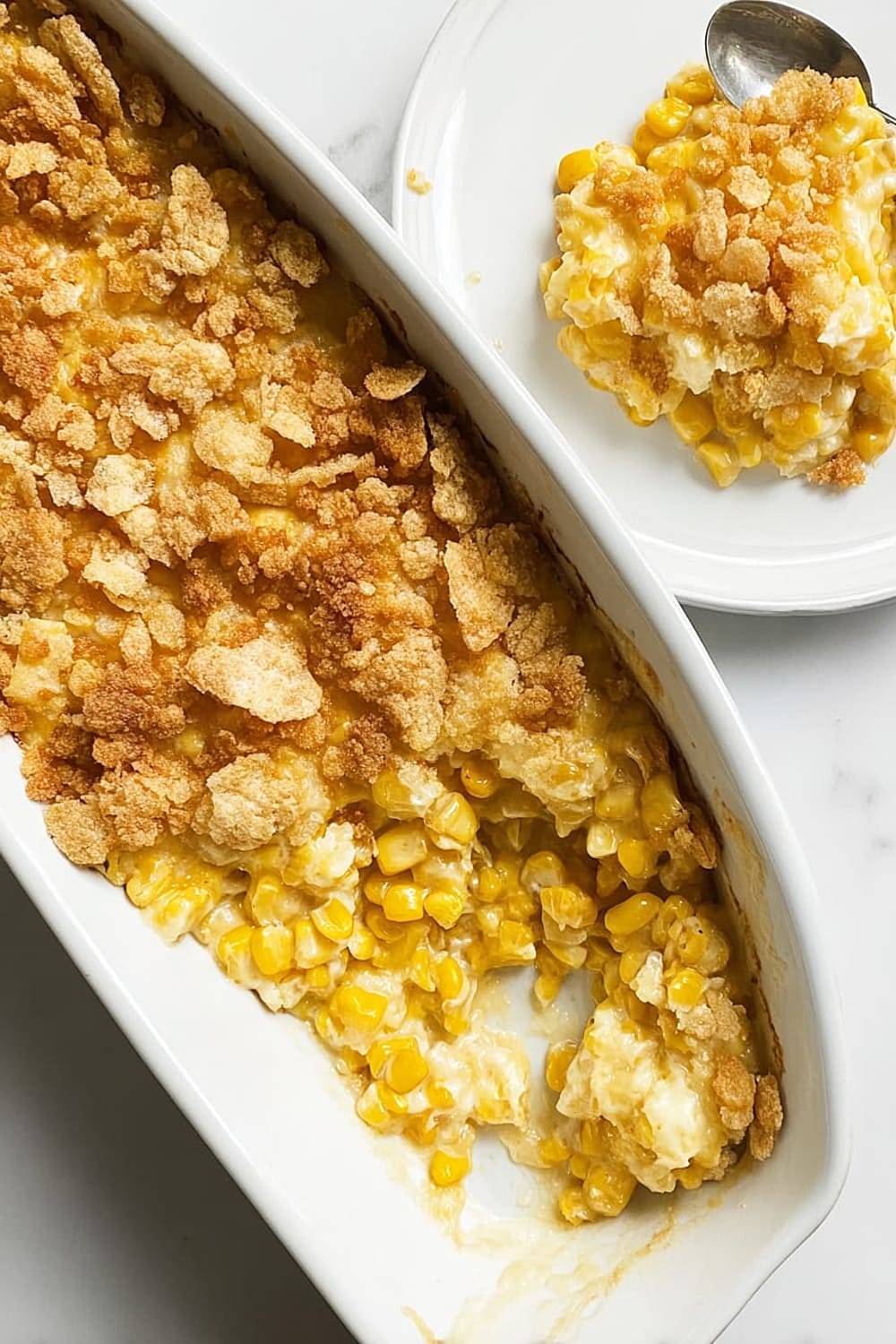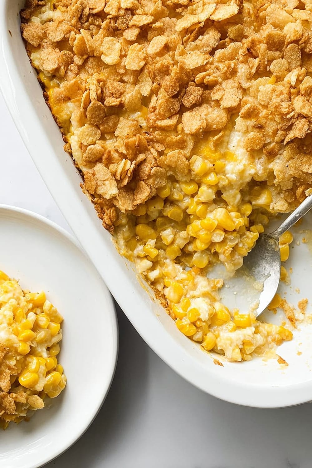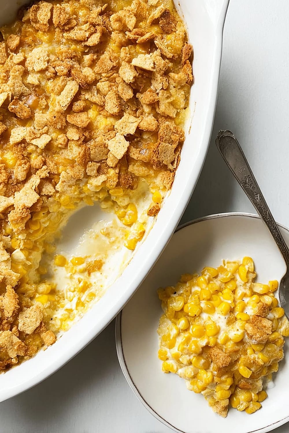 Build a Southern-inspired feast with fried chicken, buttermilk biscuits, and this scalloped corn as the star side dish. For holiday entertaining, pair with honey-glazed ham, roasted root vegetables, and cranberry sauce. Summer barbecue menus benefit from this corn alongside grilled meats, potato salad, and fresh fruit desserts.
