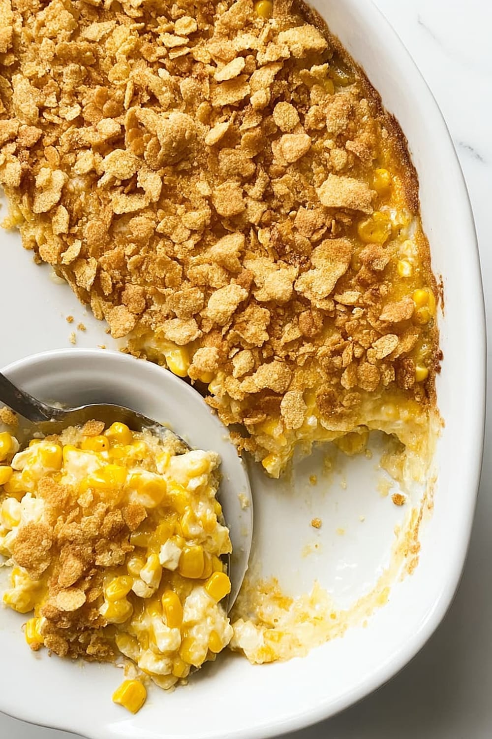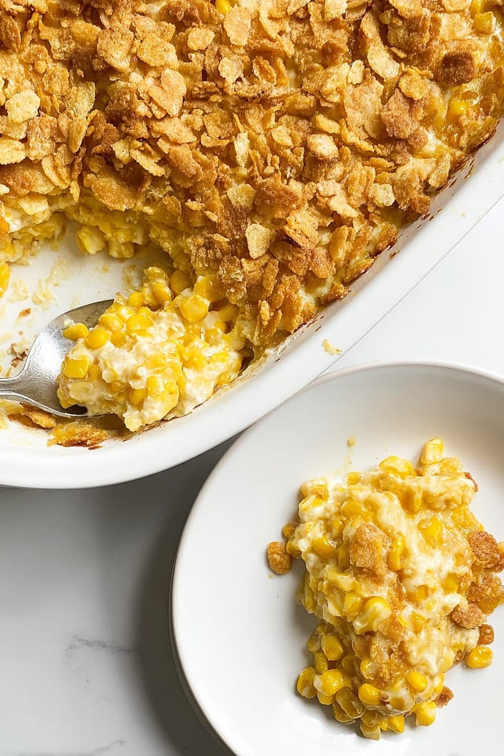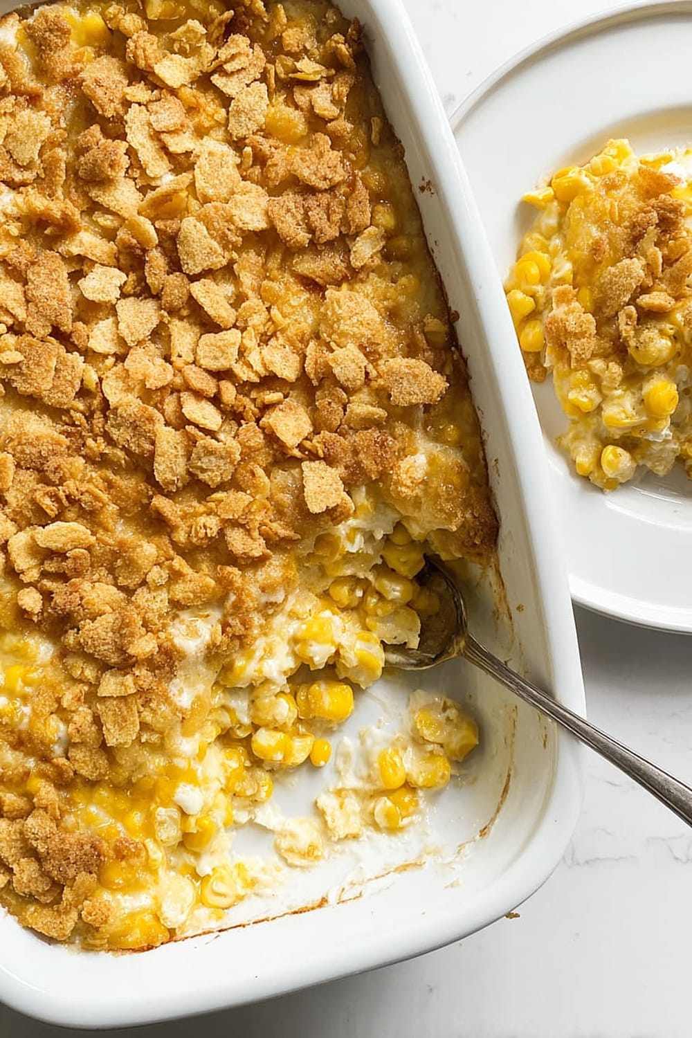 Build a Southern-inspired feast with fried chicken, buttermilk biscuits, and this scalloped corn as the star side dish. For holiday entertaining, pair with honey-glazed ham, roasted root vegetables, and cranberry sauce. Summer barbecue menus benefit from this corn alongside grilled meats, potato salad, and fresh fruit desserts.