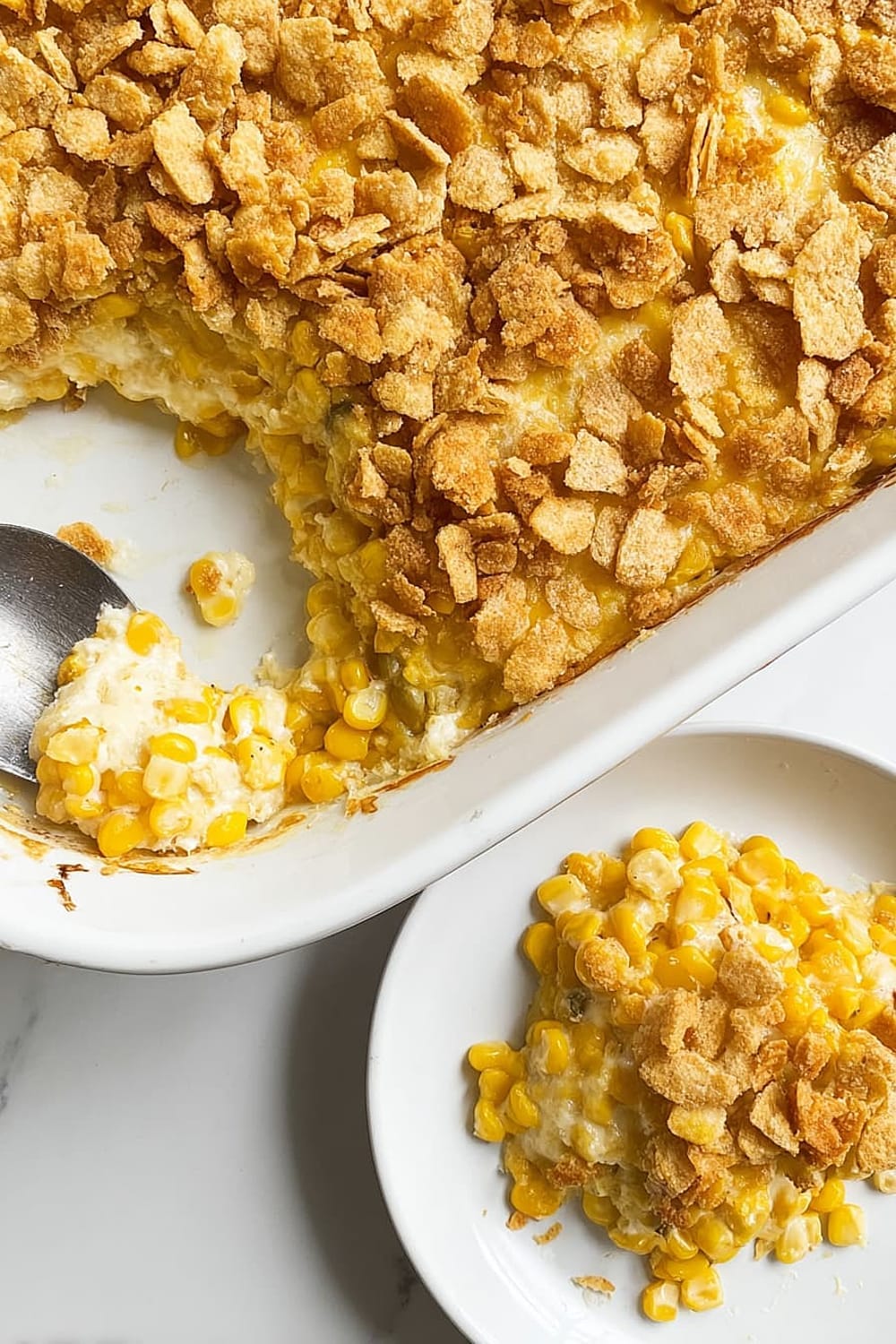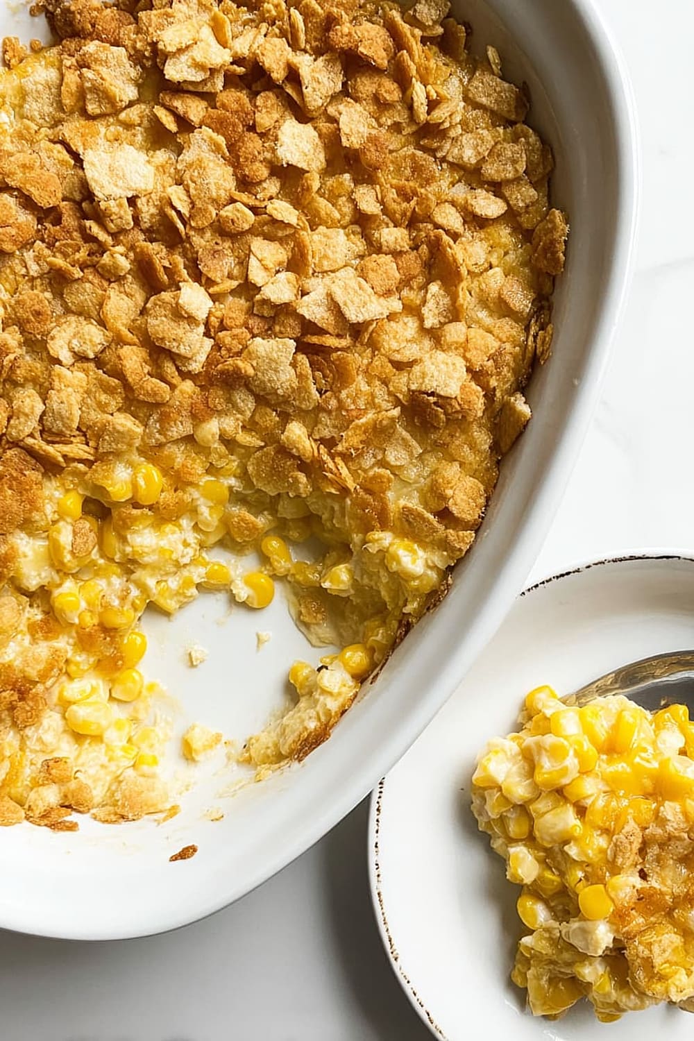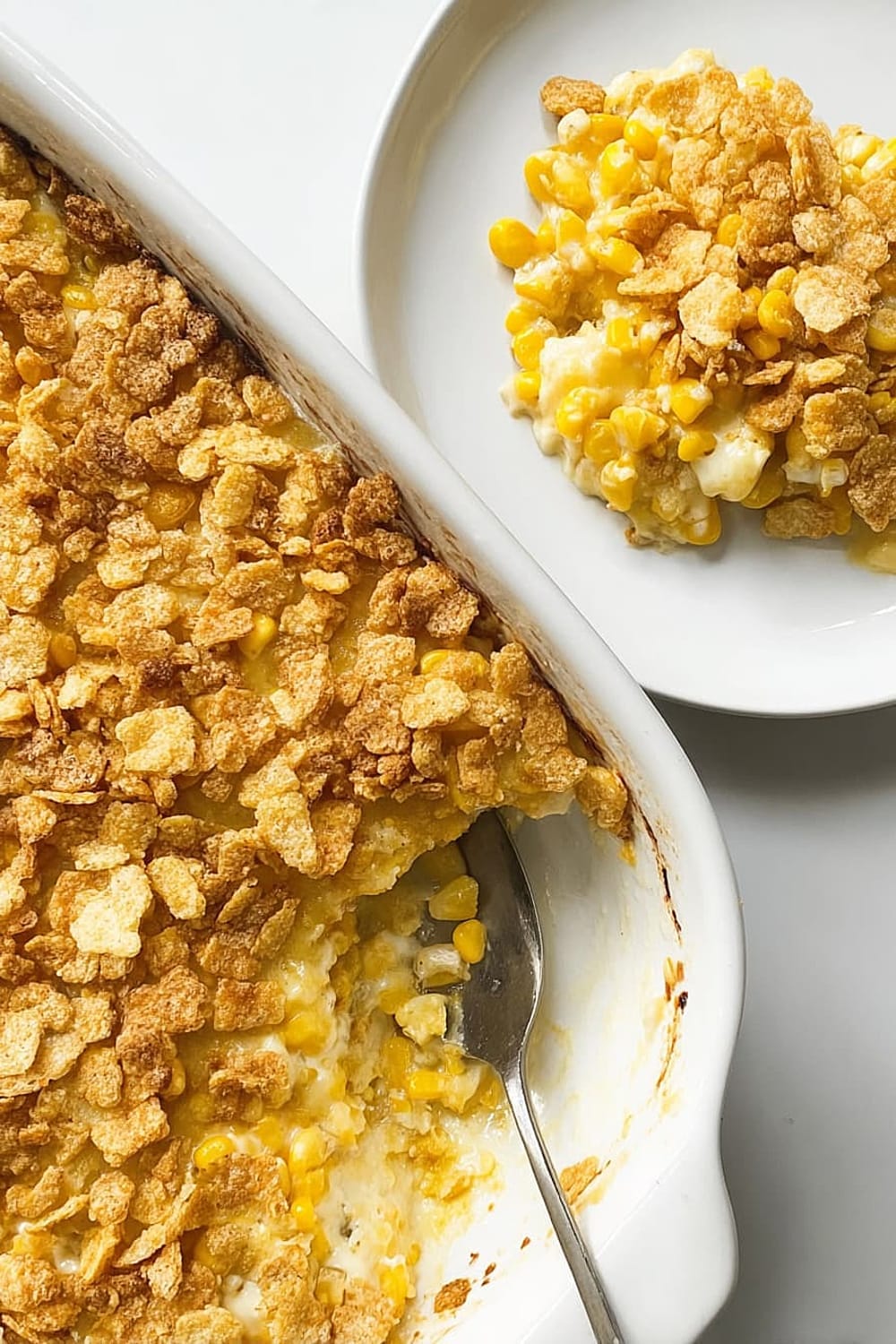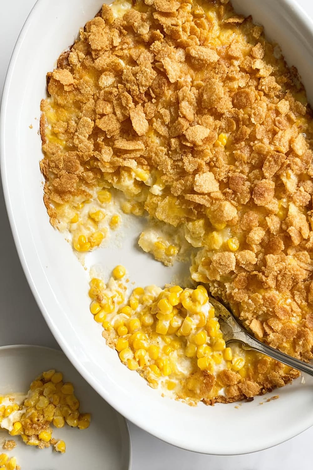 Build a Southern-inspired feast with fried chicken, buttermilk biscuits, and this scalloped corn as the star side dish. For holiday entertaining, pair with honey-glazed ham, roasted root vegetables, and cranberry sauce. Summer barbecue menus benefit from this corn alongside grilled meats, potato salad, and fresh fruit desserts.