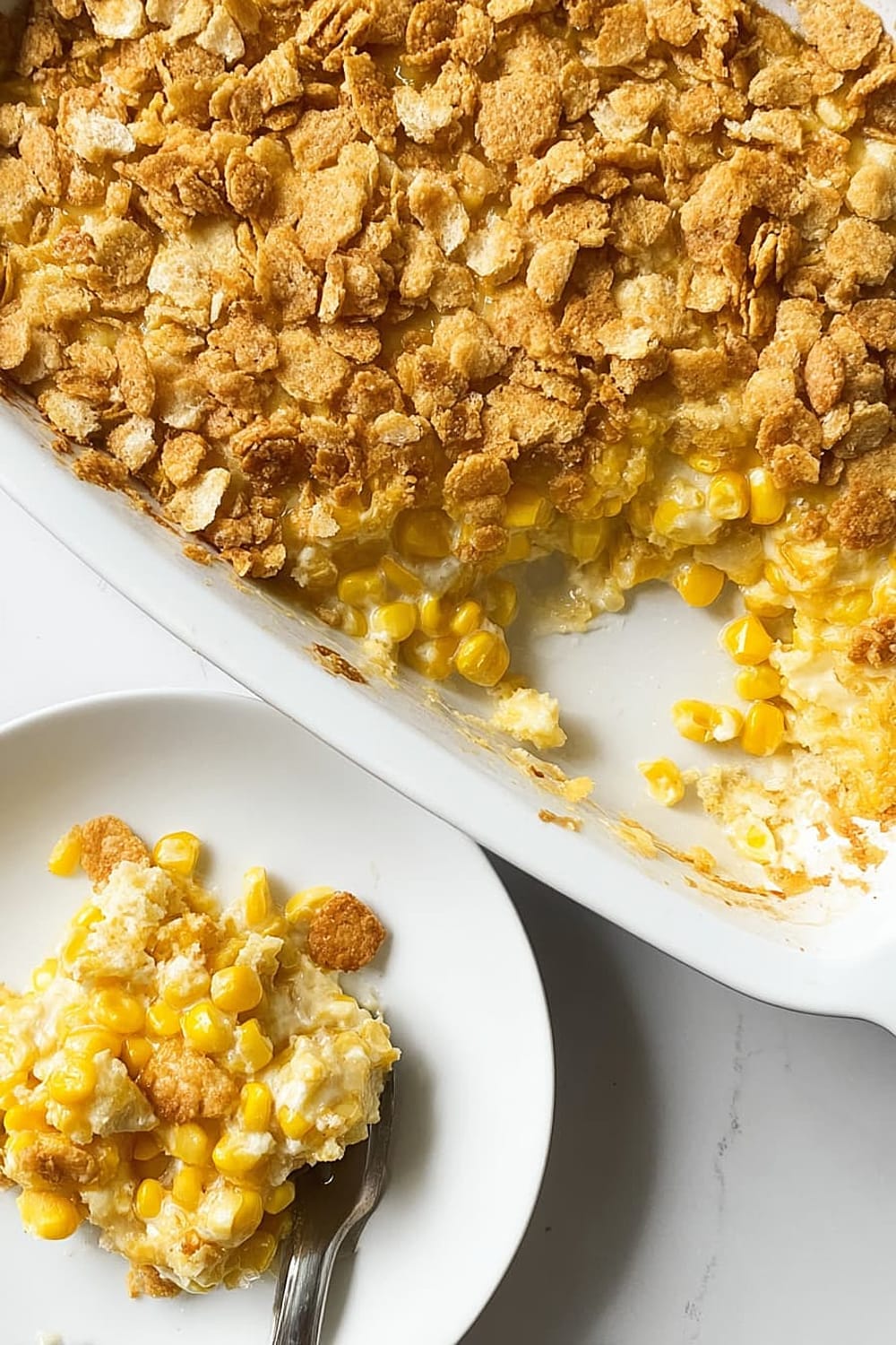 Every bite delivers that perfect contrast of textures: the crispy, buttery cracker topping giving way to the smooth, creamy corn mixture that tastes like summer in a spoon.