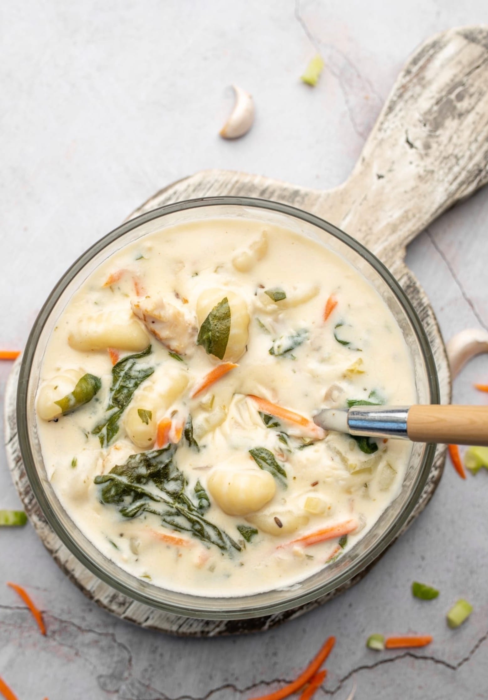 For a thicker soup, mash some of the cooked gnocchi into the broth. This adds body without extra ingredients.
