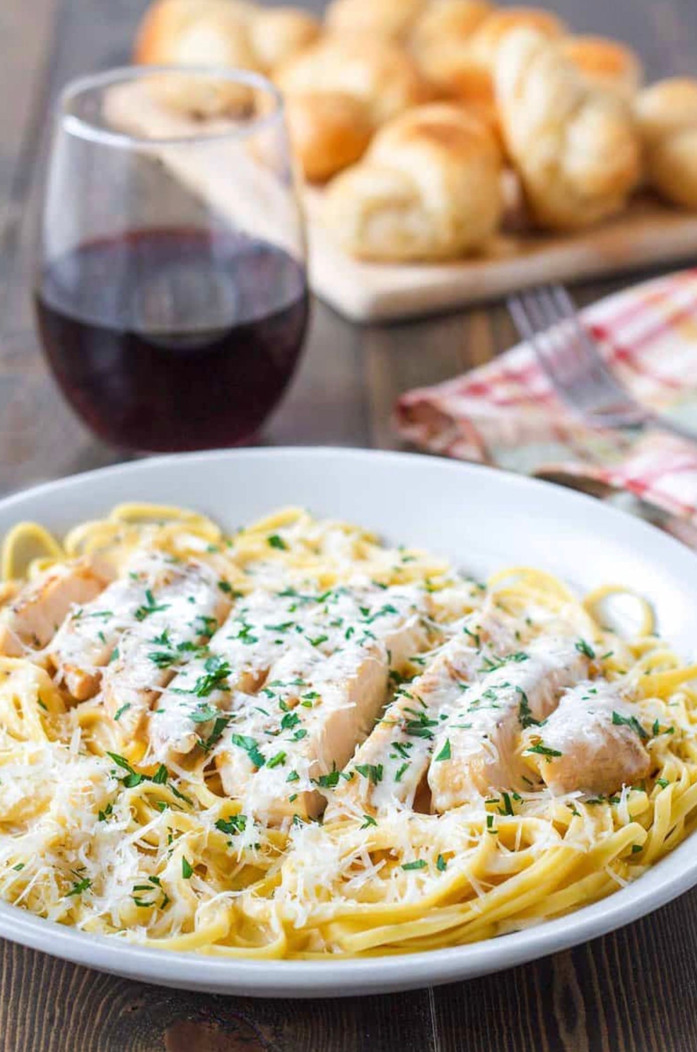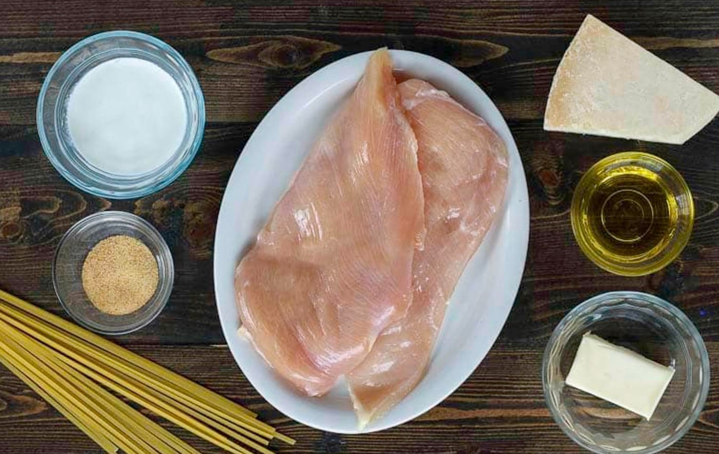 Don’t forget to grab some Fettuccine pasta to serve with your chicken and sauce. You can swap it for another pasta shape if you prefer.