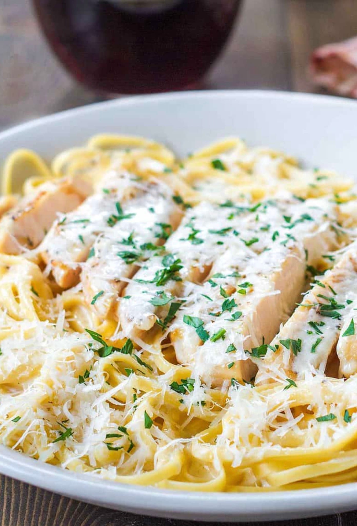 The recipe uses simple ingredients like chicken breast, heavy cream, butter, and Parmesan cheese. You’ll grill the chicken while making the sauce, then serve it all over your favorite pasta. It’s perfect for a cozy night in or when you want to impress dinner guests without spending hours in the kitchen.