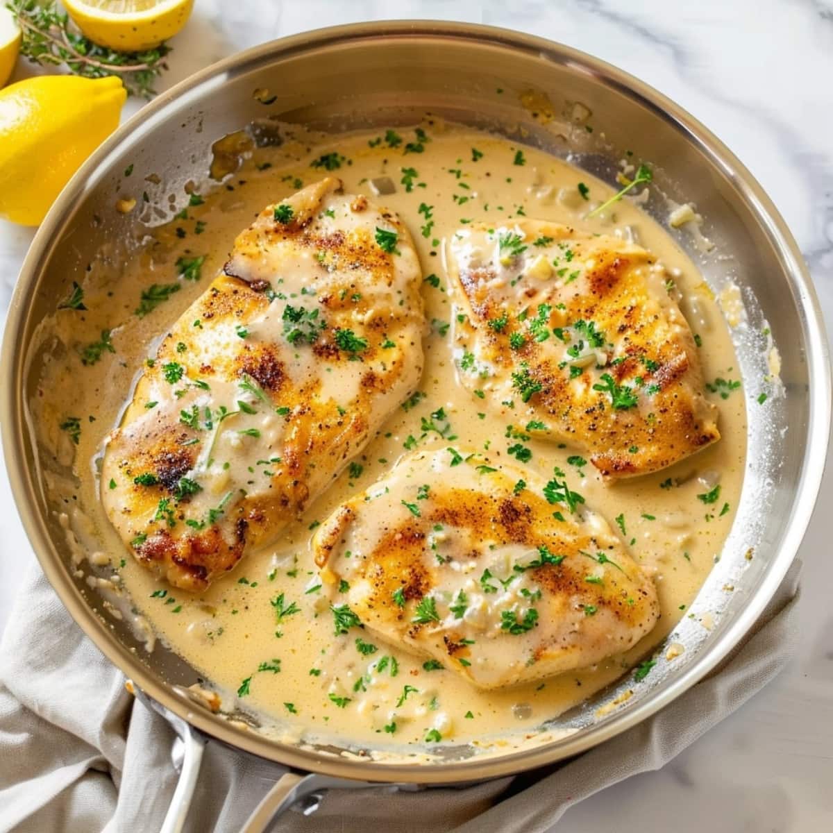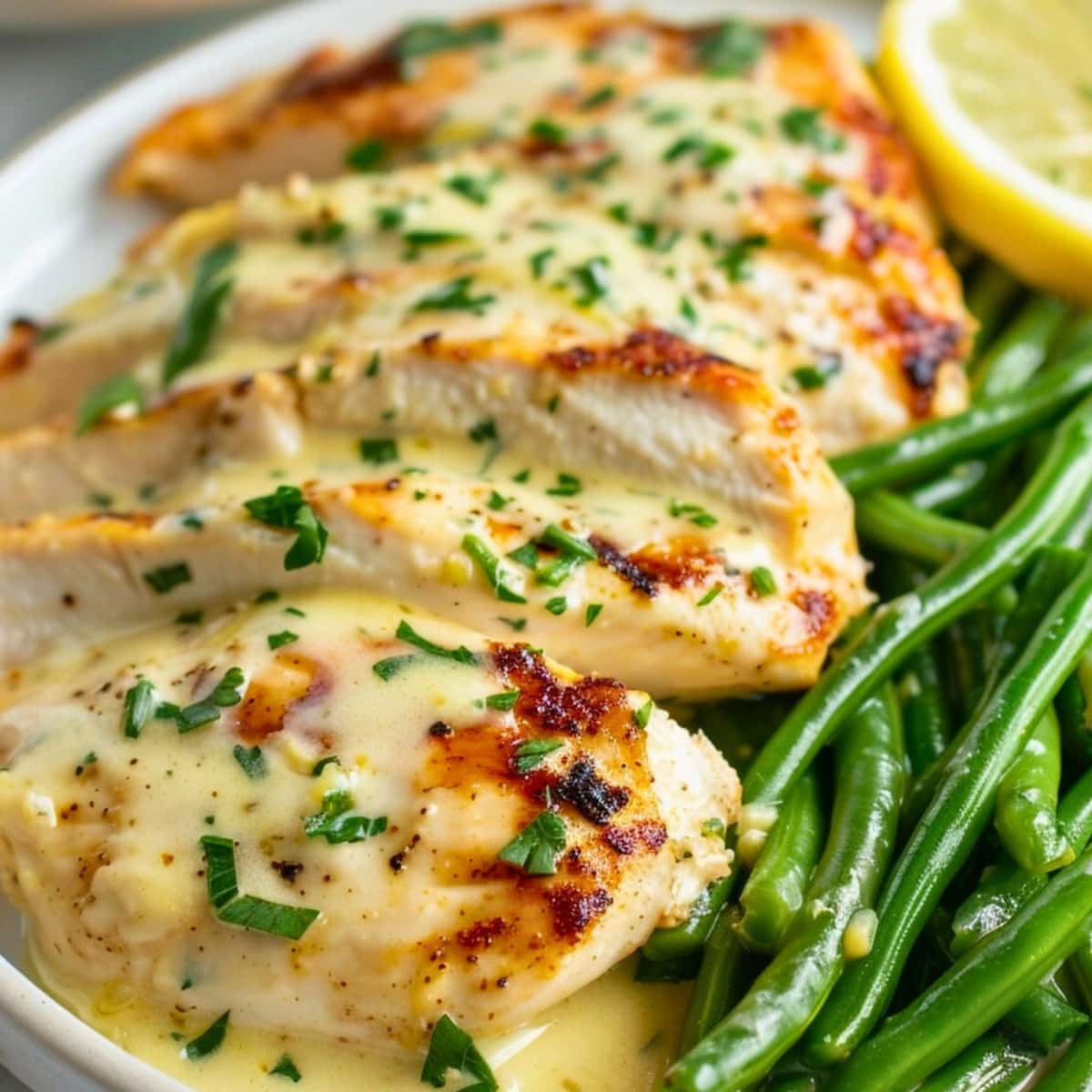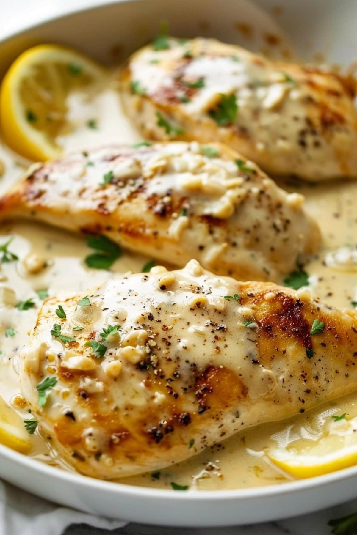 Sprinkle some chopped parsley on top and serve right away with your favorite sides. Enjoy your delicious meal!