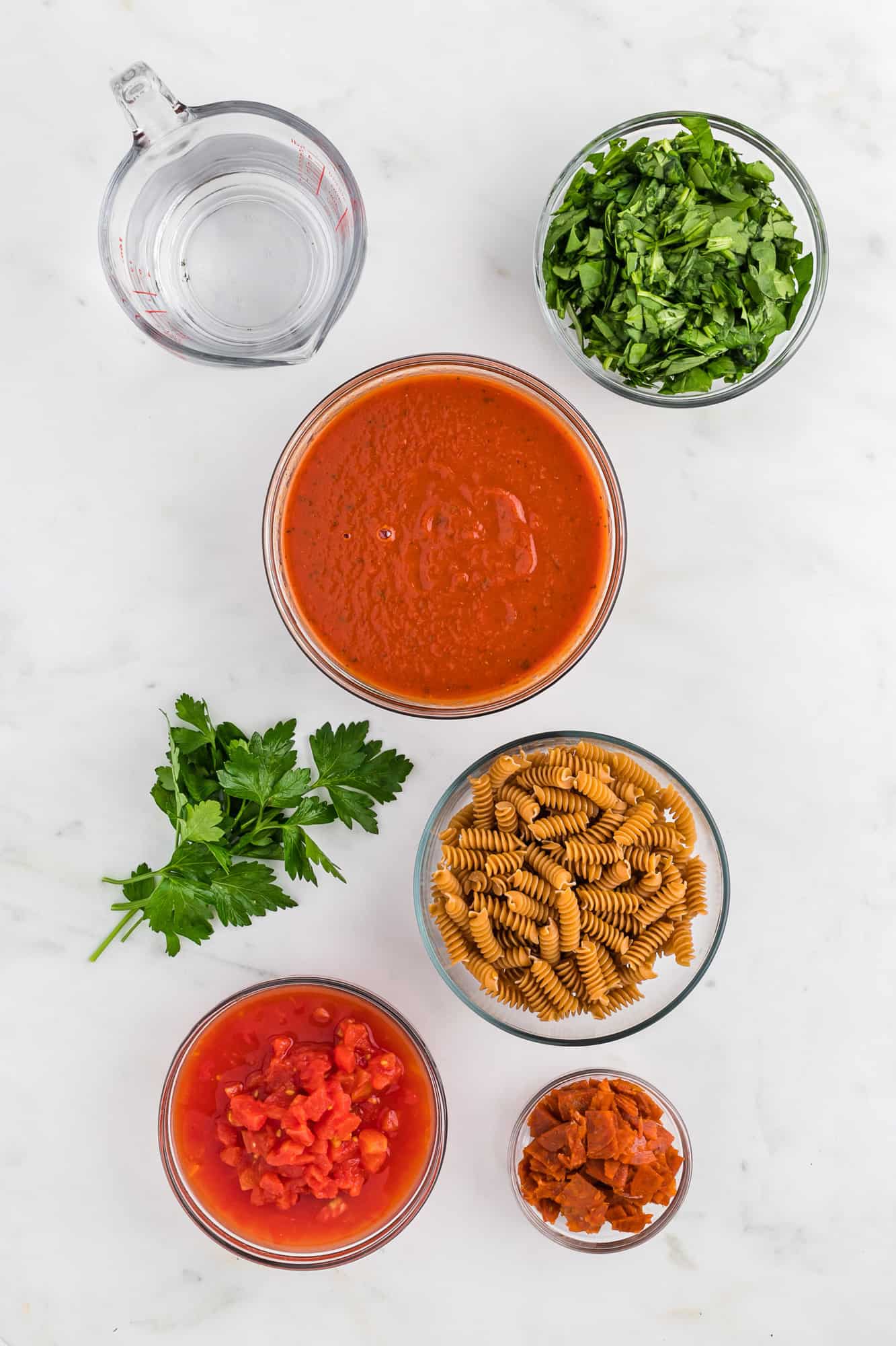 Here’s what you’ll need to make this one-pan pizza pasta: