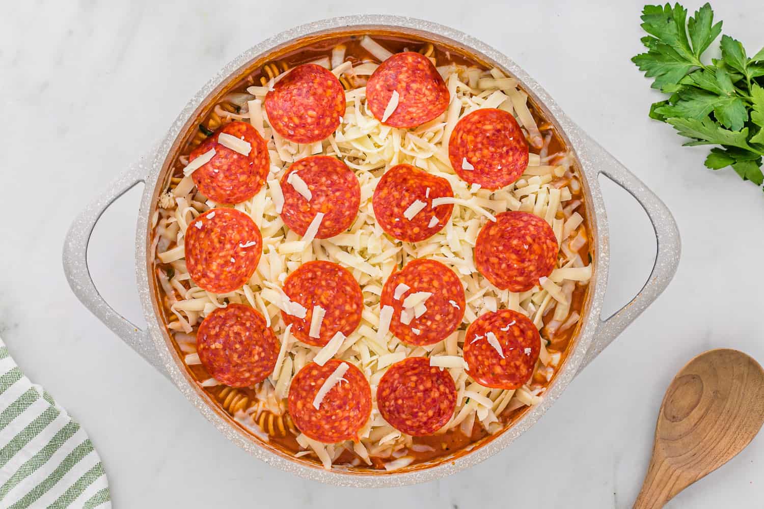 Make this dish your own by mixing up the ingredients. Try different pasta shapes like penne or fusilli. You can also swap in turkey pepperoni for a lighter option.
