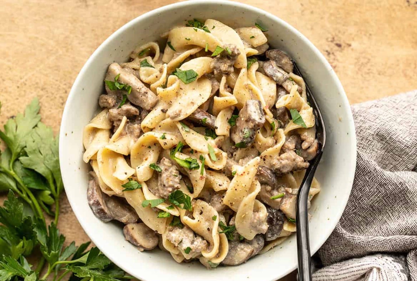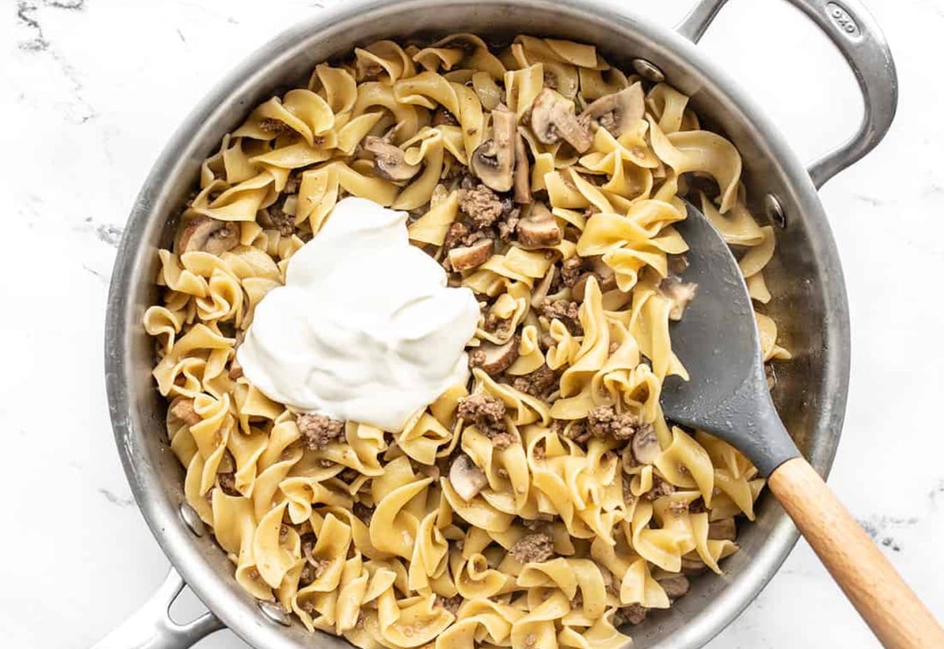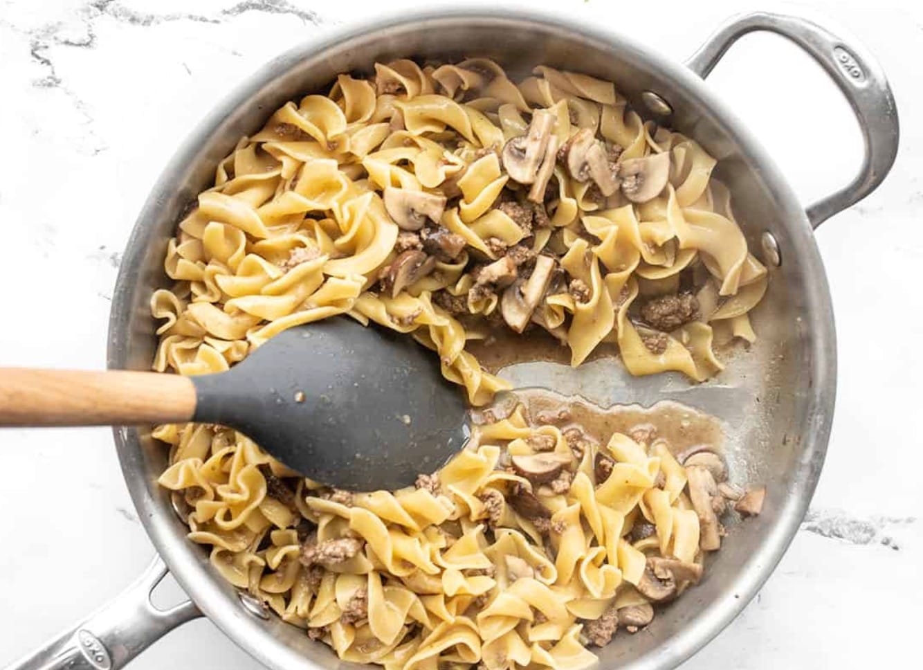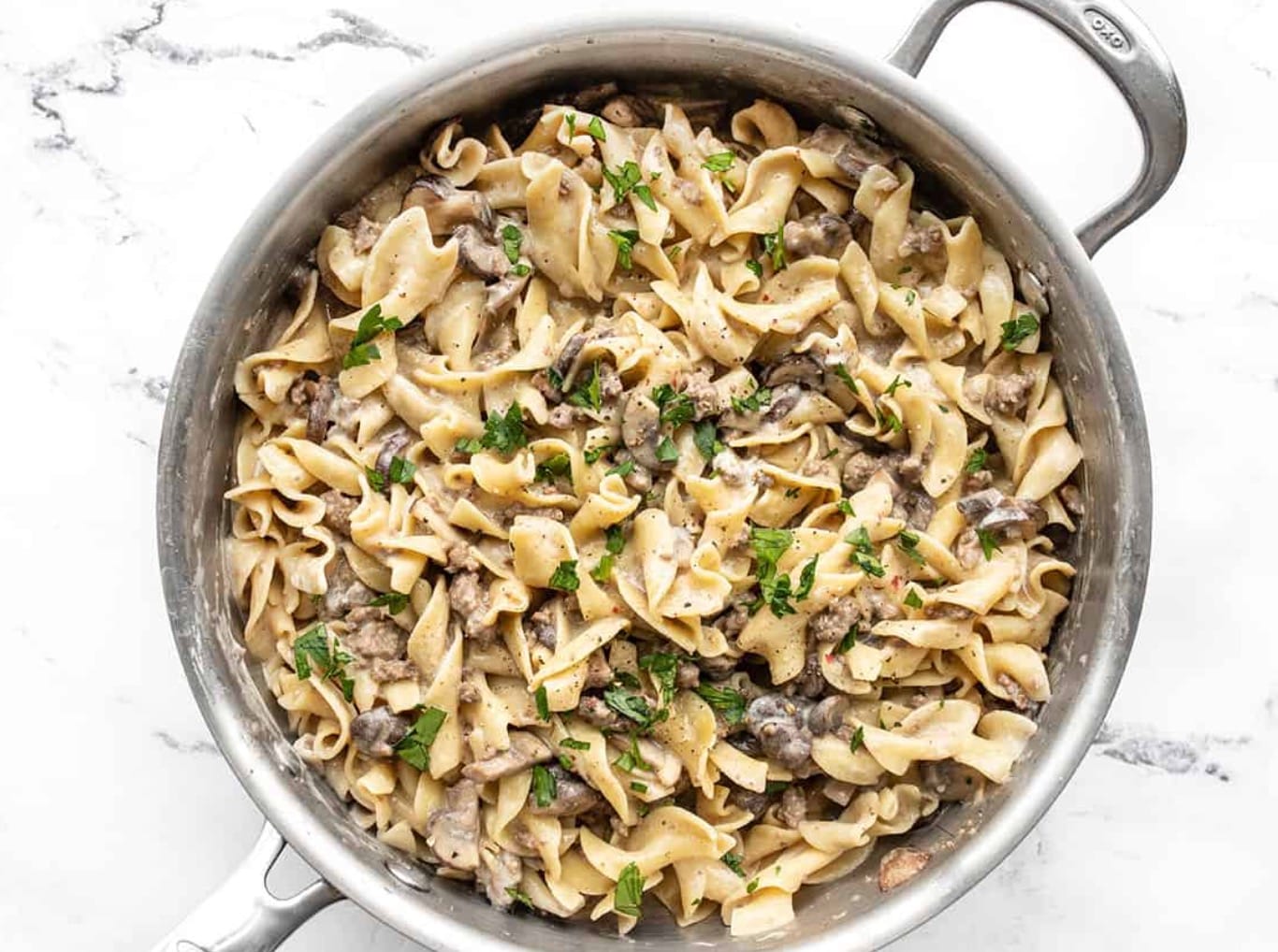 For the best one-pot beef stroganoff, use fresh mushrooms. Slice them thinly for quick cooking. If you prefer, swap ground beef for sliced sirloin steak.