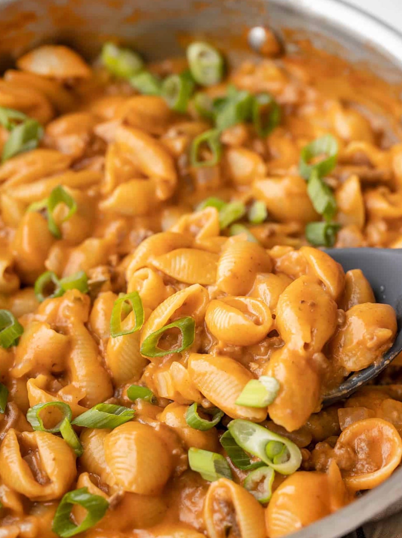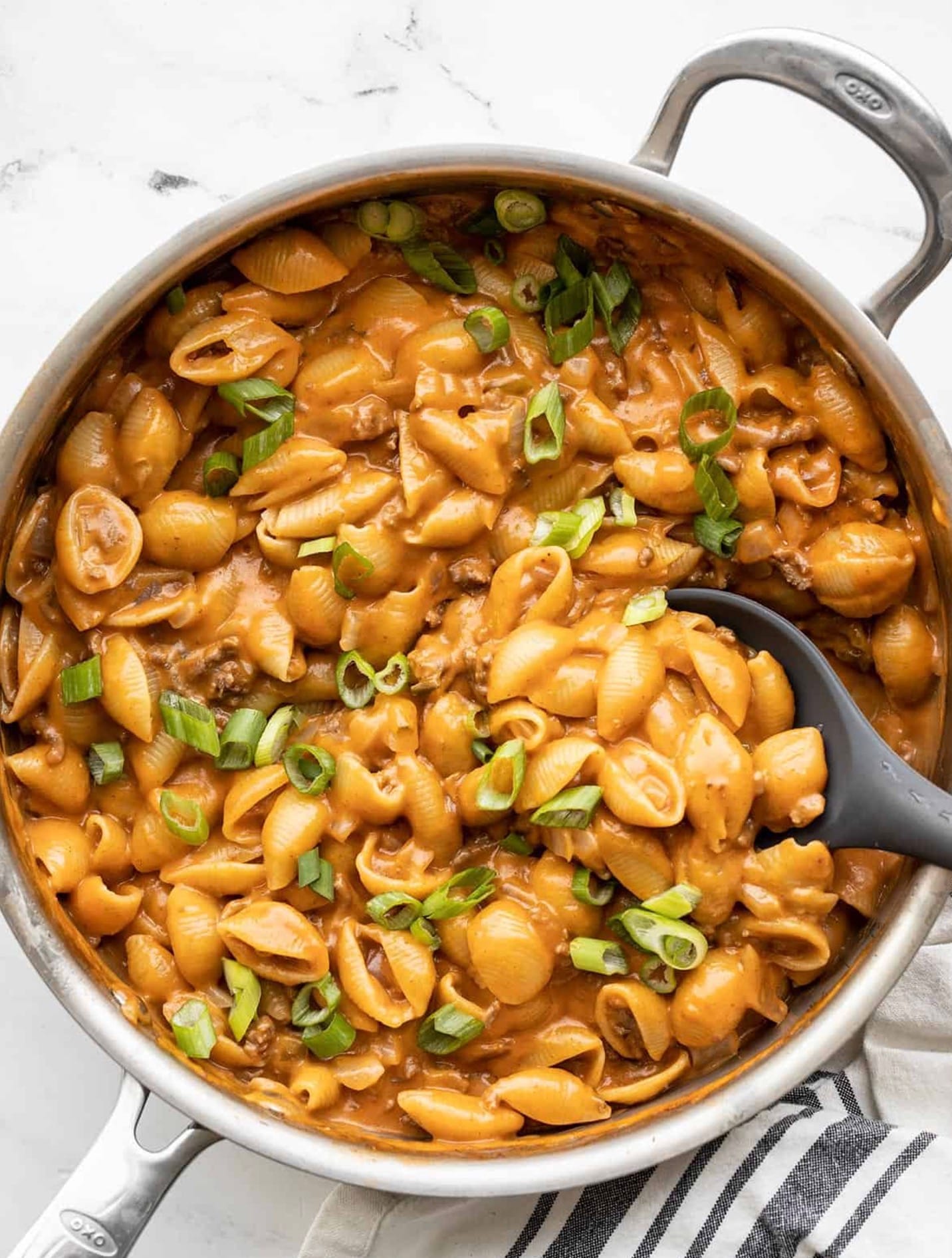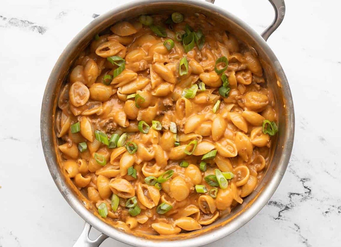 You can easily change up this One Pot Cheeseburger Pasta to suit your tastes or use what’s in your pantry. Try ground turkey or chicken instead of beef for a lighter option. Swap the pasta shells for any short pasta shape like rotini or penne.