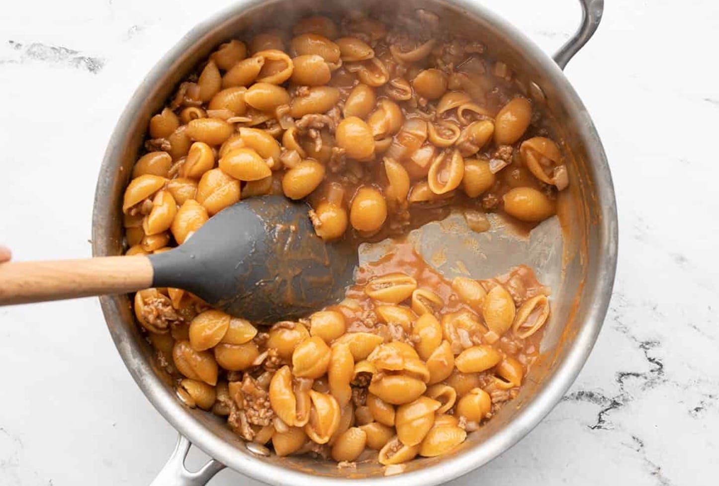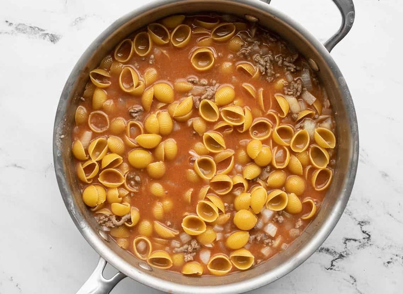 Use a heavy-bottomed pot or skillet to cook your cheeseburger pasta. This helps the pasta cook evenly and prevents burning.