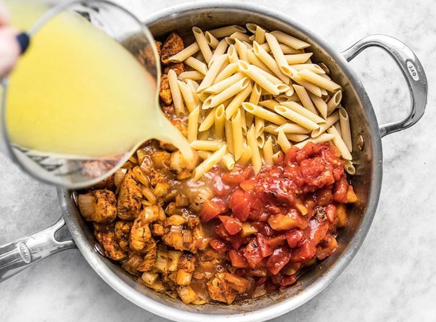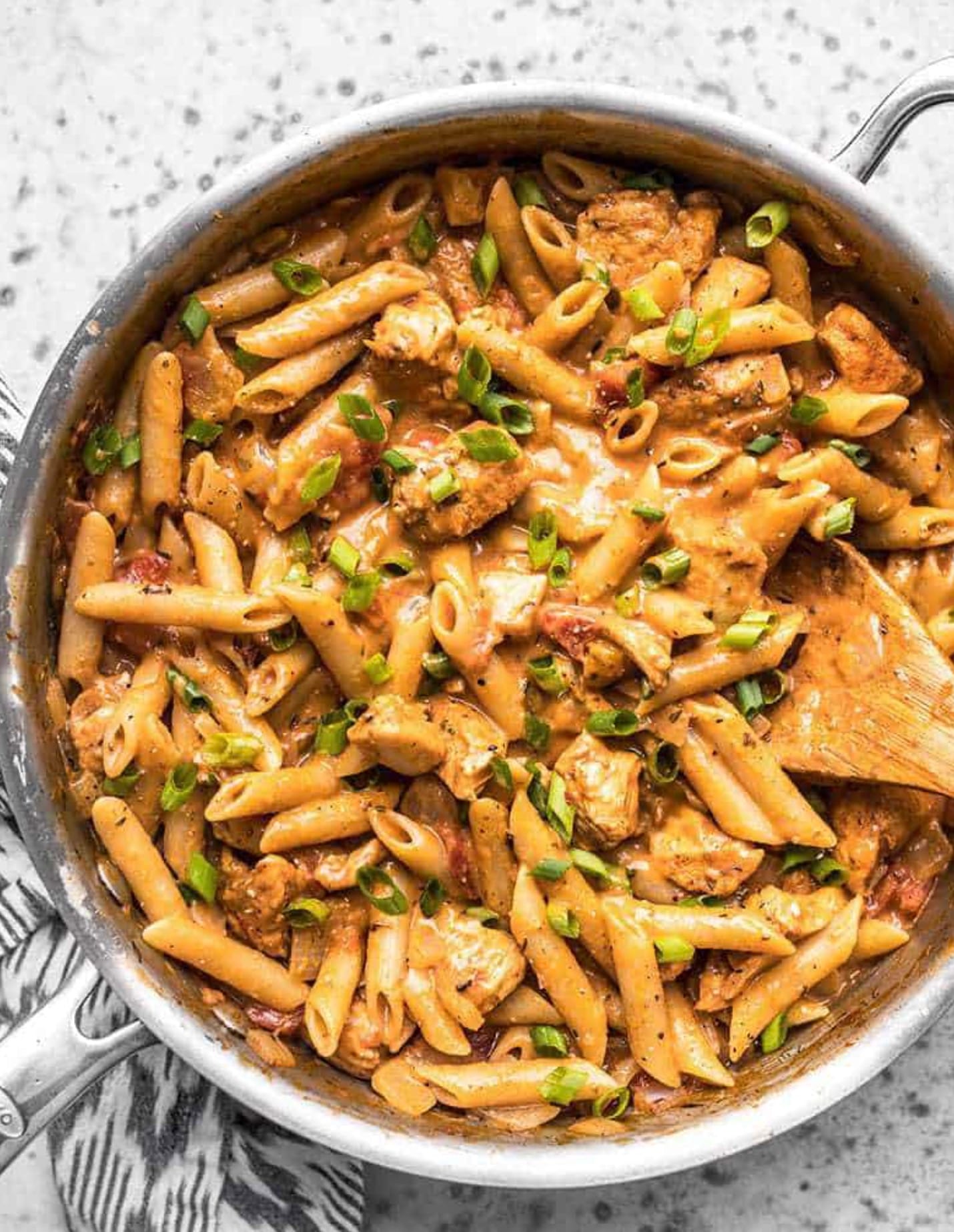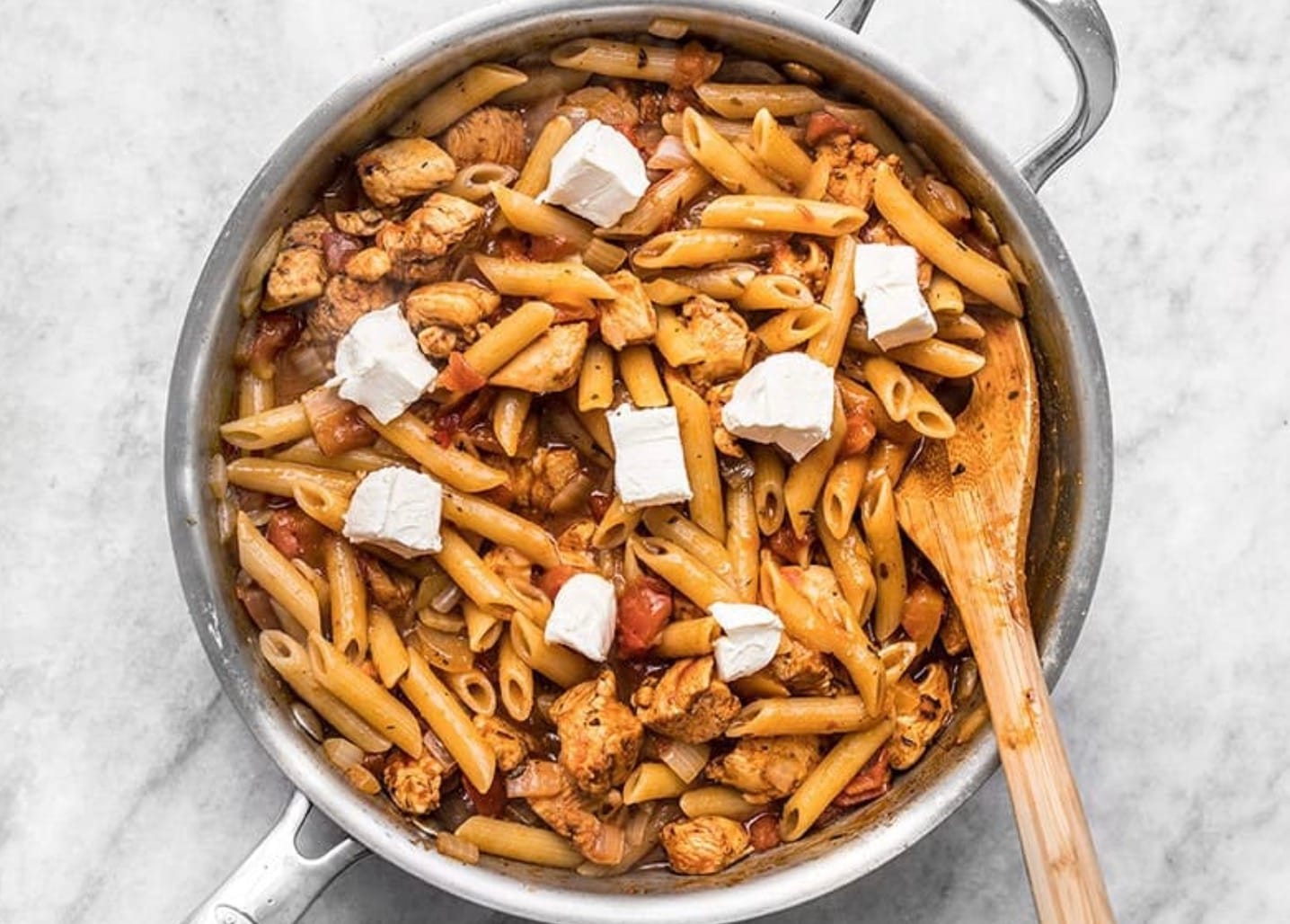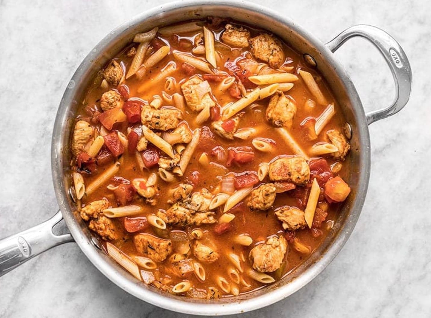 Don’t overcook the chicken at the start. It will finish cooking as the pasta simmers.